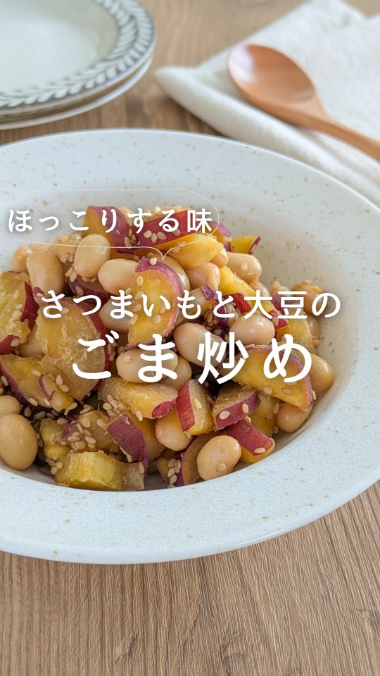 ママを助ける料理の基本→@naokos_cook さつまいもと大豆の胡麻炒め どこか懐かしい 食べ