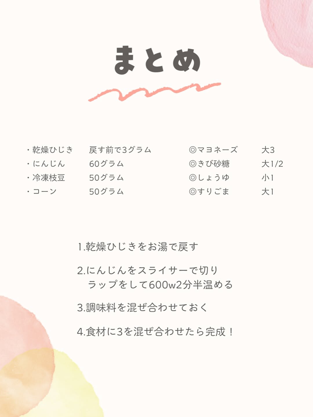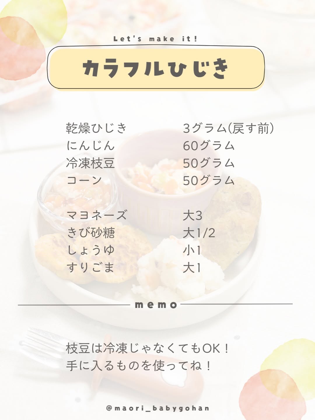 栄養たっぷり💯爆食い副菜❤︎ おばんです〜あやかだよ( •︠ࠏ•︡ ) 材料多いからめんどくさそうだなんて思わないで🥺 コーンはパウチ、枝豆は冷凍を使ってるよ✌🏻 なんならひじきもパウチがあればそれでOK🙆🏻♀️ (近所のスーパーになかった。笑) コープはあるよ😘🩷 こどもも大人も食べられる副菜だから たくさん使って保存しとくもよし🥰! 枝豆コーン好きな子いるかな? まおりは枝豆コーンさえあればOKってくらいに 枝豆コーンだいすき人間でっす🫛🌽🩷 みんなのこどもたちは何好き😳? 良かったら教えてね❤︎ 今回の投稿も保存しとくのがおすすめ🙌🏻 おすすめから来たみなさん♡ ぜひフォローしていってね🥹 離乳食・幼児食のレシピで悩まなくなるよ😊 ↓↓ @maori_babygohan すでにフォローしてくれてるまおりんずのみんな♡ いいね・コメントめちゃくちゃ嬉しいよ〜😭❤️🔥 今日もよろしくお願いします🙇🏻♂️圧圧圧ww いつもありがとう🫶🏻🌈 𓈒𓏸𓈒꙳𓂃 𓈒𓏸𓈒꙳𓂃 𓈒𓏸𓈒꙳𓂃 𓈒𓏸𓈒꙳𓂃 𓈒𓏸𓈒꙳𓂃 #幼児食 #副菜 #親子ごはんの悩みサポート