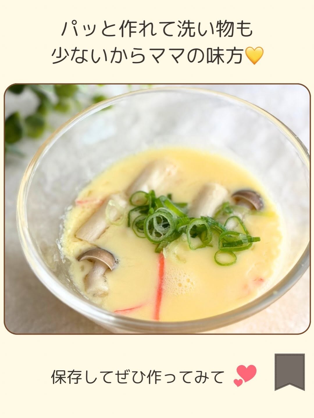 他のレシピはこちら▶︎ @yuzu__recipe \1番簡単なぷるっぷる茶碗蒸し/ 茶碗蒸しって 「作るのめんどくさそう🥹」とか 「難しそう😖」ってイメージない? これなら 火も包丁も使わずにレンジだけで作れるから 寒い日にパッと作って熱々食べよ😋 ☝🏻作り方のポイント☝🏻 爆速で作りたい時は 工程③の卵液をこしたり、泡をすくう作業は 省いてOK🙆🏻♀️ 工程④レンチンする時は 500W 2分が早いけど 『す』が入りやすいので 気をつけながらチンしてね☺️ 最後まで読んでくれてありがとう💛 🍊フォローして次の親子ごはんも待っててな🍊 ゆず @yuzu_kodomo.gohan #茶碗蒸し #電子レンジレシピ #親子ごはんの悩みサポート
