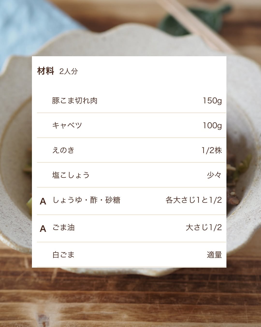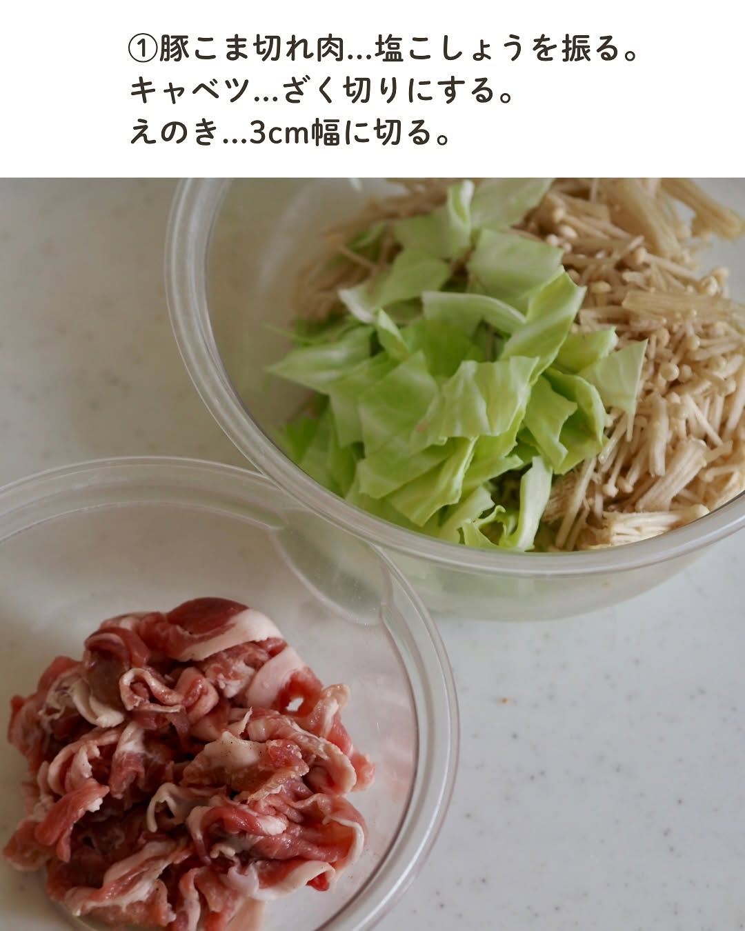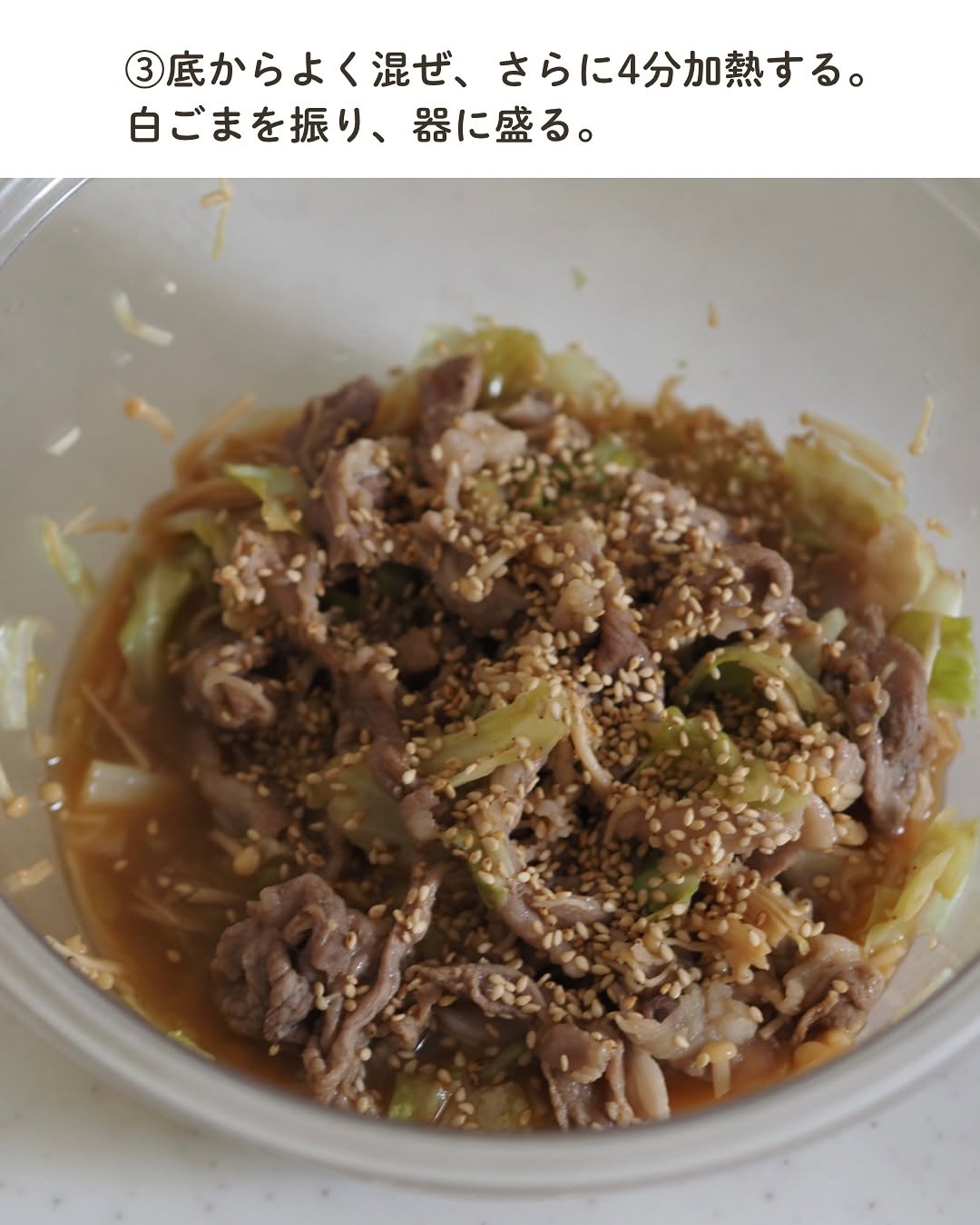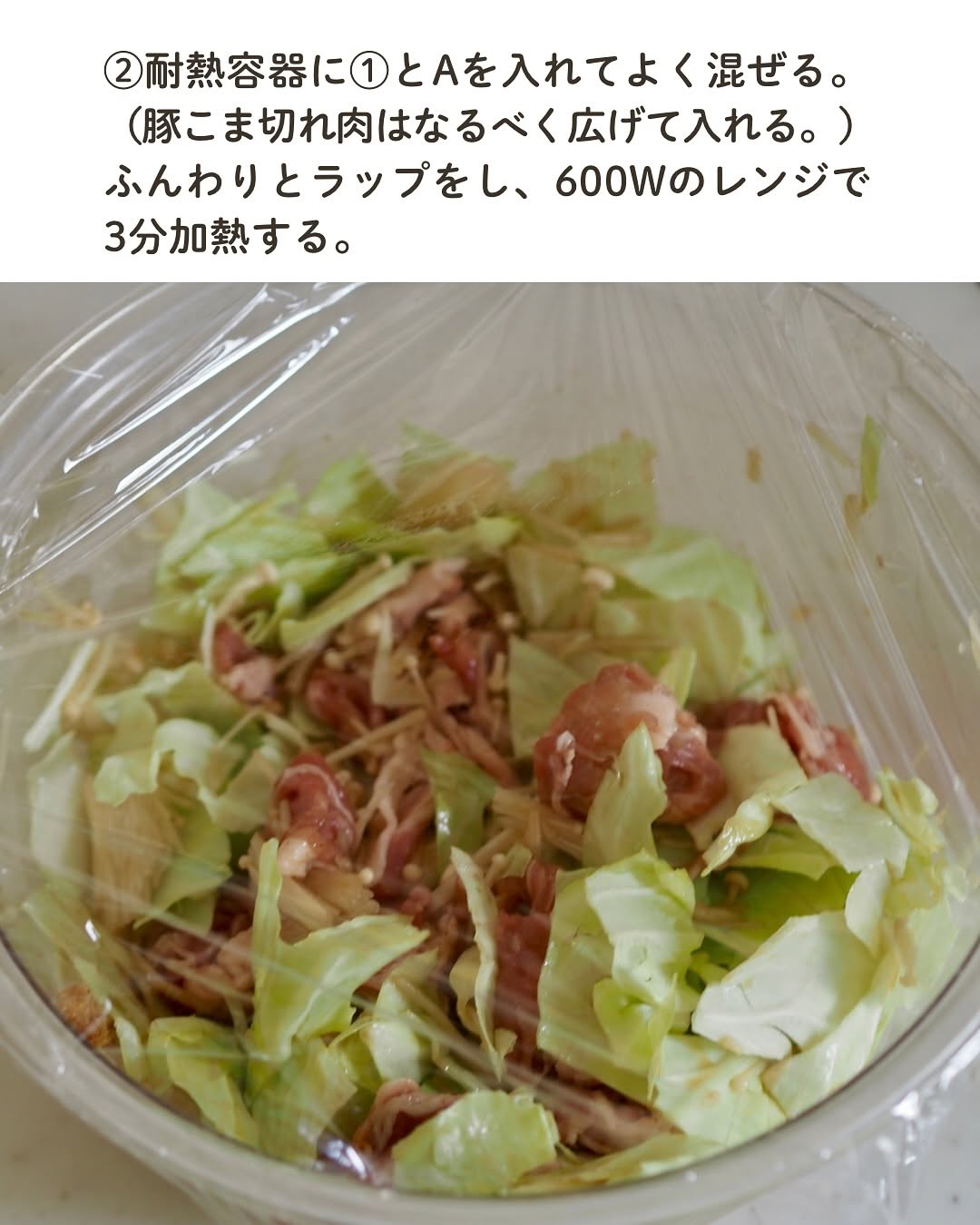 レンチン7分! 豚こまとキャベツのうまだれ蒸し✨ 見た目地味やけど レンチンで作ったと思えんほど美味しいやつ🤤 えのきの食感がいい仕事してくれてる🥹🔥 キャベツとえのきから出た水分と タレがいい感じに合わさってたまらん...!! 切って混ぜてチンするだけなので あっという間にできます😳✨ 白ごまたっぷりが美味しいです!! ぜひお試しください! 【材料】(2人分) 豚こま切れ肉...150g キャベツ...100g えのき...1/2株 塩こしょう...少々 Aしょうゆ・酢・砂糖...各大さじ1と1/2 Aごま油...大さじ1/2 白ごま...適量 【作り方】 ①豚こま切れ肉...塩こしょうを振る。 キャベツ...ざく切りにする。 えのき...3cm幅に切る。 ②耐熱容器に①とAを入れてよく混ぜる。 (豚こま切れ肉はなるべく広げて入れる。) ふんわりとラップをし、600Wのレンジで3分加熱する。 ③底からよく混ぜ、さらに4分加熱する。 白ごまを振り、器に盛る。 ⋆⋆⋆⋆⋆⋆⋆⋆⋆⋆⋆⋆⋆⋆⋆⋆⋆⋆⋆⋆⋆⋆⋆⋆⋆⋆⋆⋆⋆⋆⋆⋆⋆⋆⋆⋆⋆⋆ このアカウントでは 料理や買ってよかったものなどを 投稿しています ︎ @usagi.no.recipe ⋆⋆⋆⋆⋆⋆⋆⋆⋆⋆⋆⋆⋆⋆⋆⋆⋆⋆⋆⋆⋆⋆⋆⋆⋆⋆⋆⋆⋆⋆⋆⋆⋆⋆⋆⋆⋆⋆ #キャベツレシピ #親子ごはんの悩みサポート