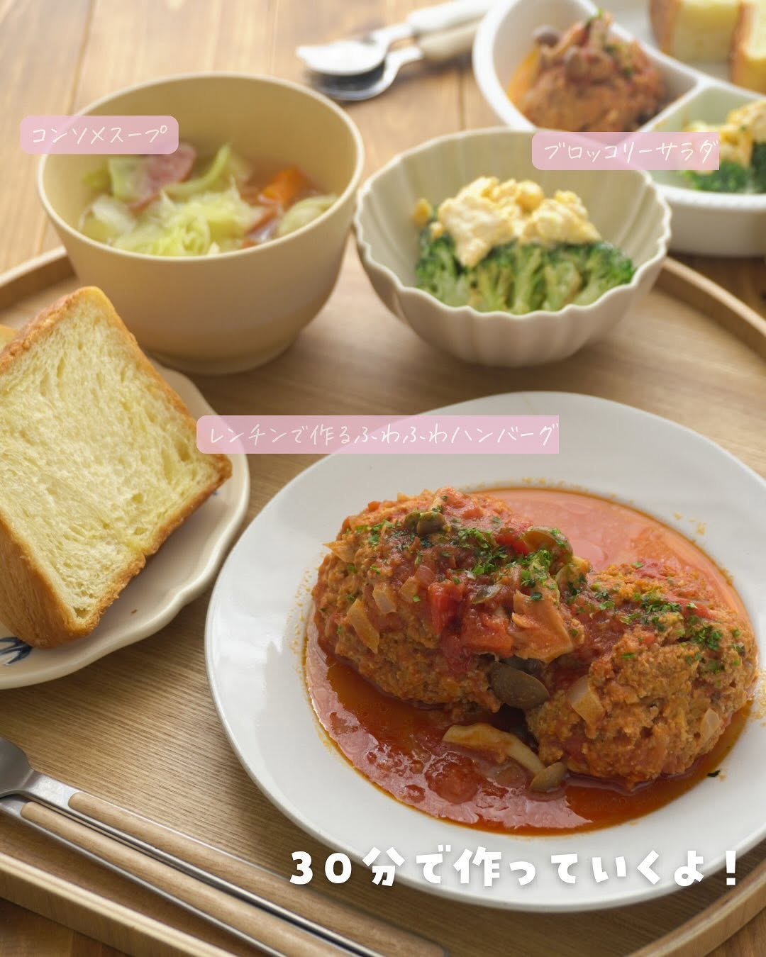 今日9/17 はるママ26歳になりました✨ お祝いしていただけると嬉しいです☺️🩷← お久しぶりの投稿ですが自信作の ふわふわレンチンハンバーグ献立です🍔 献立 ・レンチンハンバーグ ・ブロッコリーのサラダ ・コンソメスープ ・パンorご飯 レンチンで作るハンバーグは焼くよりも ふわっふわに仕上がるのでお肉が苦手な子でも パクパク食べやすいです💫 #献立 #幼児食 #親子ご飯の悩みサポート