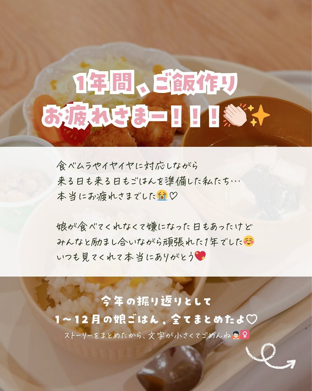 今年1年の娘のご飯まとめ🍙♡ 2025年も今日で終わりだね🥹 今年も1年、ありがとうございました✨ 娘は3歳になり、食べムラもそんなに直らないし、 イヤイヤも結構すごい気がするけど😂 そんな時も、このアカウントに投稿するからとか、 みんなも頑張ってるから…と思うと頑張れたよ❤️🔥 娘のことで悩んだ時はストーリーに呟くと みんながアドバイスくれたり励ましてくれたり😭 みんなと一緒に子育てしてる感じがとても心強いです☺️ 本当にいつもありがとう!!🤍 離乳食の時に始めたこのアカウントも 気づけばもうすぐ3年🥹✨ これからも、娘のご飯のことや子育てのことを 発信していくので見てもらえたら嬉しいです🫶🏻 2026年もよろしくね🥰! みなさま、良いお年をお迎えください🎍 ┈┈┈┈┈┈┈┈┈┈┈┈┈┈┈┈┈┈┈┈ ゆい┊作り置きで楽する離乳食 幼児食 ▷ @yui.kids_gohan \チンするだけ!3分で準備できる離乳食•幼児食🌷/ ◡̈ ¦平日楽できる作り置きレシピ多数🥣 ◡̈ ¦毎日ごはんや🉐情報はストーリー限定👀ˎˊ˗ ◡̈ ¦時間と心にゆとりができ親子でハッピー🤍 👧🏻3y┊食べムラ娘のため試行錯誤中🍳 「1週間マネするだけ!取り分け幼児食献立BOOK」 を作成しました🙌🏻✨ →プロフィールのリンク「幼児食献立BOOK」又は ハイライトの「献立BOOK」 から🌼 いいね/コメント/保存/フォロー 離乳食作りの励みになります🤍 ┈┈┈┈┈┈┈┈┈┈┈┈┈┈┈┈┈┈┈┈ #幼児食 #幼児食献立 #幼児食レシピ #幼児食記録 #幼児食メニュー #幼児食アカウント #フリージング幼児食 #幼児食ストック #幼児食ストック作り #幼児食フリージング #幼児食作り方 #幼児食作り #フリージングストック #フリージング #幼児食作り置き #幼児食冷凍ストック #取り分け幼児食 #取り分けレシピ #取り分けごはん #取り分けご飯 #子どもごはん #こどもごはん #親子ごはんの悩みサポート