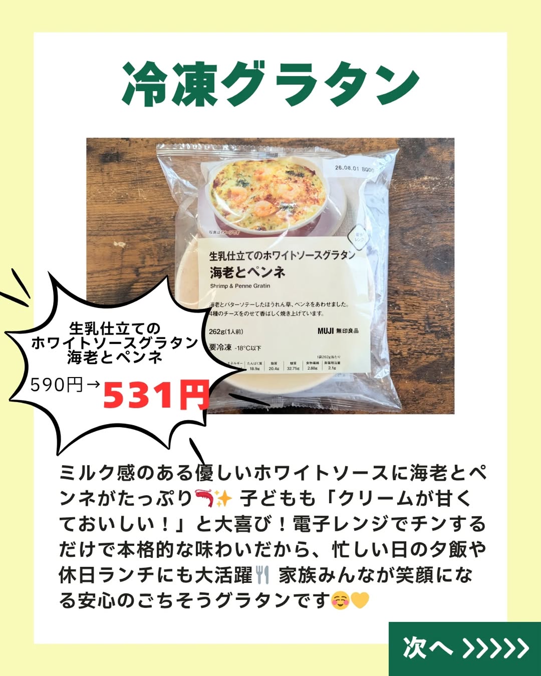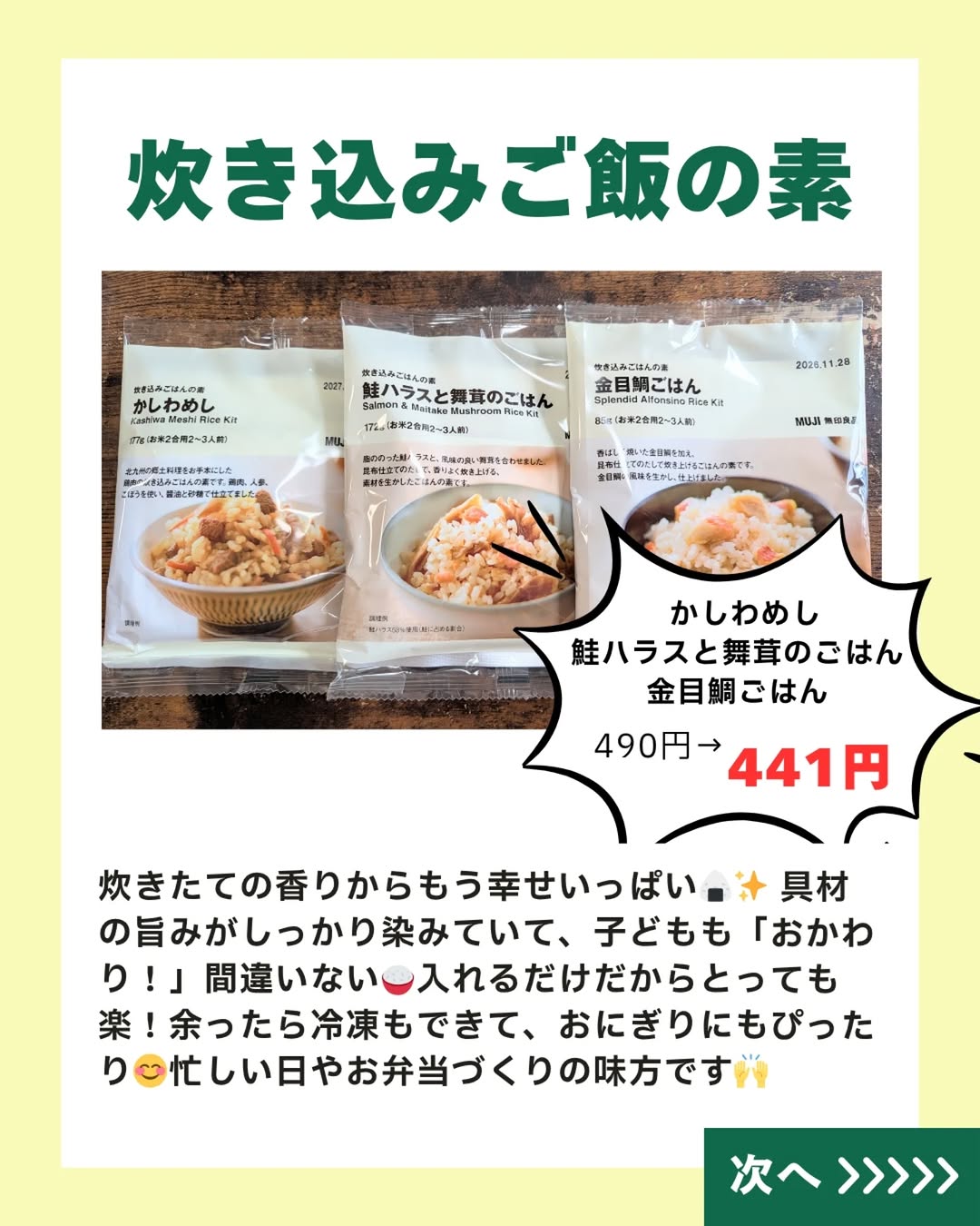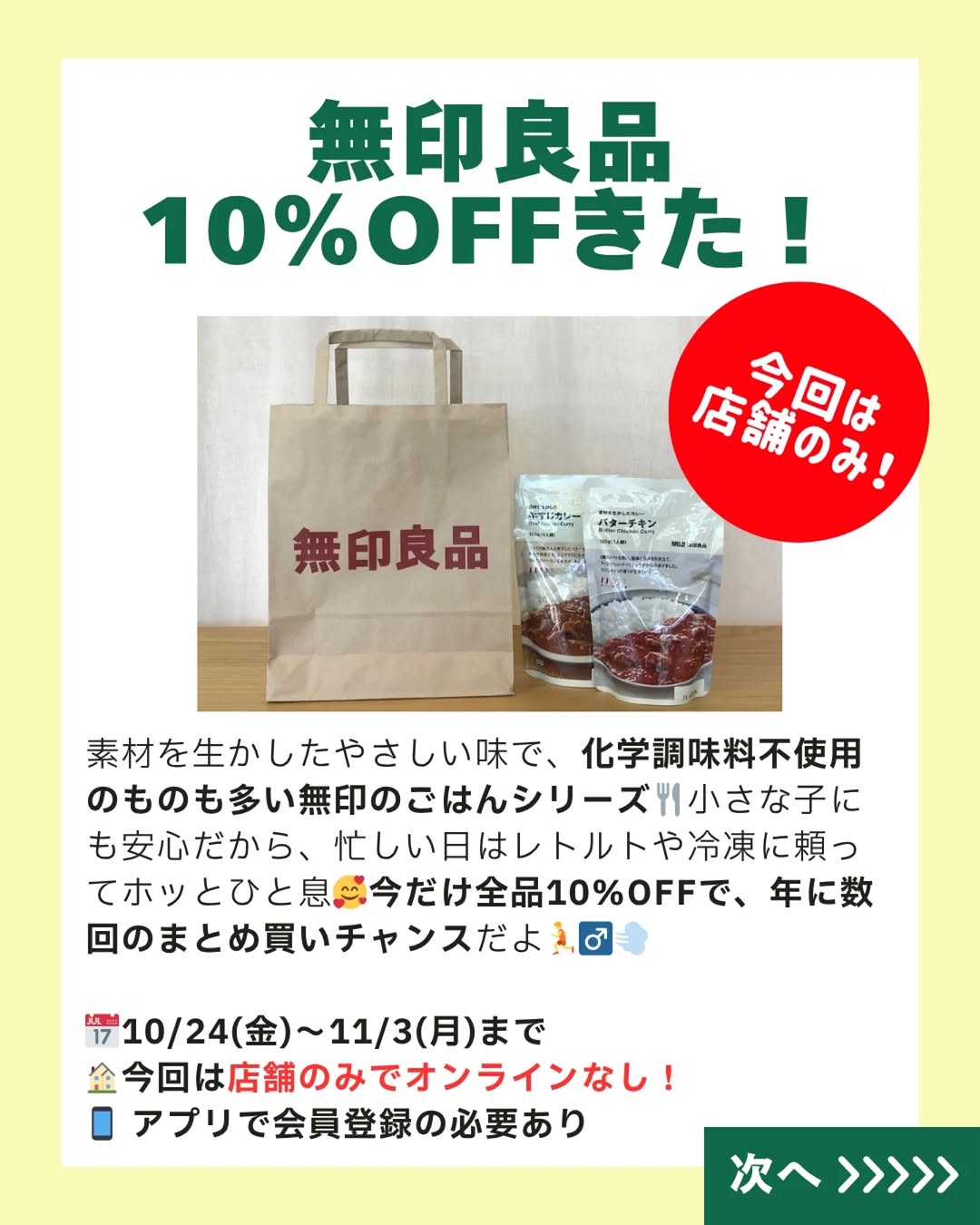 こんばんは🌛 くふう.キッズごはんスタッフです☺️💕 毎日のごはんづくり、ほんと大変ですよね🍳 「今日はもう作りたくない〜😢」 「冷蔵庫、空っぽだ…💦」 そんな日に助けてくれるのが 👉️ 無印良品 のレトルト&冷凍シリーズ🍱✨ 無印は化学調味料・合成着色料不使用のものが多くて、 素材の味を生かしたやさしい味わいがうれしい🤍 小さな子どもにも安心して出せる、ママの味方です👶 しかも今は、年に数回だけの #無印良品週間 ⏰️ 全品10%OFF! 普段セールをしない無印だから、このタイミングを見逃せません💨 今回はスタッフが実際に食べて「これはリピ確定!」と思った “子どもと一緒に楽しめる無印FOOD10選”を紹介します👇️ 👑 無印良品週間 おすすめFOOD10選🧒💕 ・素材を生かした 辛くないカレー (国産りんごと野菜/ほうれん草のキーマ) ・トマトの煮込みハンバーグ ・素材を生かした 味噌汁(豚汁) ・炊き込みごはんの素 (かしわめし/鮭ハラスと舞茸/金目鯛ごはん) ・冷凍からあげ(塩こうじ/醤油) ・海老とペンネのホワイトソースグラタン ・もち麦ごはんの枝豆塩昆布としらすおにぎり ・不揃いバウム(バナナ・ちいさなバナナ) ・焼き菓子 (てんさい糖ビスケット/とうもろこしスナック) ・果汁100%ゼリー(3種のフルーツ) 冷凍・レトルトとは思えないおいしさで、 「安心」「おいしい」「すぐ出せる」の三拍子がそろう無印食品✨️ 忙しい日も“手抜きじゃなく、ちゃんとおいしい”が叶います🥰 \ 無印良品週間は11/3(月)まで! / この機会に、ママも子どもも笑顔になれる“安心ごはん”をストックしよう🍴💖 ======================= 「くふう.キッズごはん」は、 子育て中のママパパが“もっと気楽に もっと楽しく” こどもごはんと向き合えるように、 ▶️ レシピ ▶️ 外食情報 ▶️ レトルト・冷食活用 ▶️ 便利グッズ を発信しています✨️ フォローして、日々の「ごはん疲れ」から少しラクになろう☺️ 👉️ @kufu_kidsgohan #無印良品週間 #無印ごはん #子どもごはん #時短ごはん #冷凍ごはん #レトルトごはん #親子ごはん #幼児食 #取り分けごはん #幼児食ストック #ママの味方 #共働きごはん #育児ハック #無印食品 #無印レトルト #無印冷凍食品 #くふうキッズごはん #親子ごはんの悩みサポート #買ってよかった #ママライフ #保存レシピ #無印良品好きと繋がりたい