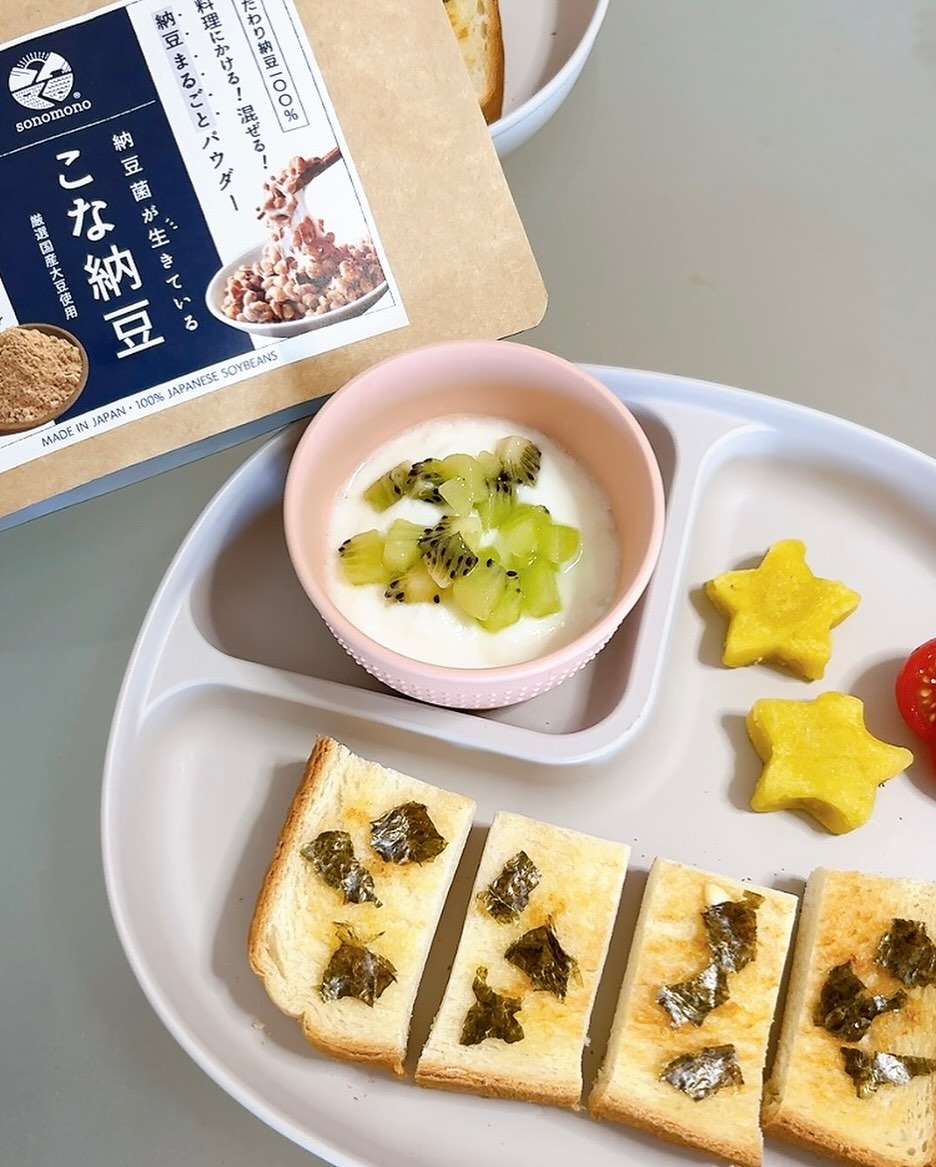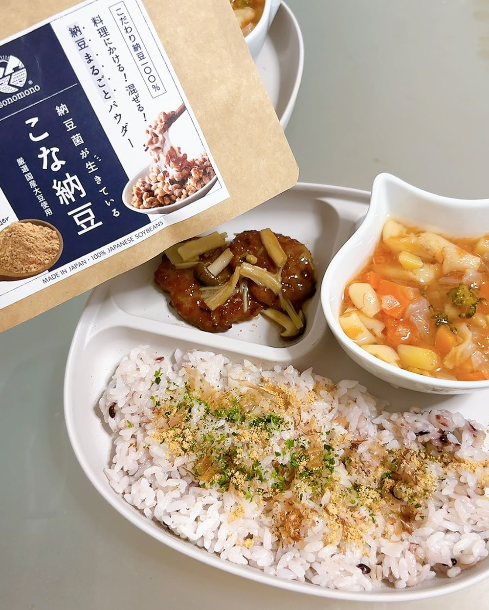 @65haruto ←他の投稿はこちら 1歳&3歳晩ごはん🧒🏻👶🏻⭐️ 💡今回は”こな納豆”を使った3days🫘 納豆大好きな次男、ネバネバするのがイヤな長男。 そして ネバネバで汚される&におう&ネバ食器洗うのがちょっと..な母。 という訳で長男離乳食の時からこな納豆には 助けられてまして😌 今回は、 ①味噌汁にほんの少し ②ごはんにぱらり ③トーストにバター塗ってこな納豆少し で使いました🌱 一見、味噌汁とかパンとか、ぇぇぇ…って感じなんですが 意外といけます😮 味噌汁に関しては入ってるか分からん。けど栄養摂れる。 バタートーストにプラスはなんと、きな粉っぽい感じ。 どっちも少量でオケ🙆♀️少量が、いい🙆♀️ 他にも お好み焼きにちょい入れ、卵焼き、おやき、離乳食のおかゆ などに使えるよ🫘 . —【使ったアイテム】———————————————————— ↓これらは @65haruto プロフ下の 楽天roomに載せています🌱 ★栄養ちょい足し ・こな納豆 ★食材 ・お麩(ハート形) ★グッズ他 ・こども食器 ・ぷっくりマグ _______________________________________________ . #ワンプレートごはん #晩ごはんプレート #こな納豆 #おにぎり #1歳ごはん #2歳ごはん #3歳ごはん #年子兄弟 #幼児食レシピ #離乳食レシピ #キャラごはん #こどもごはん記録 #子どもごはんメニュー #手づかみ食べレシピ #取り分けレシピ #栄養満点レシピ #かわいいごはん #子どもが喜ぶごはん #親子ごはんの悩みサポート
