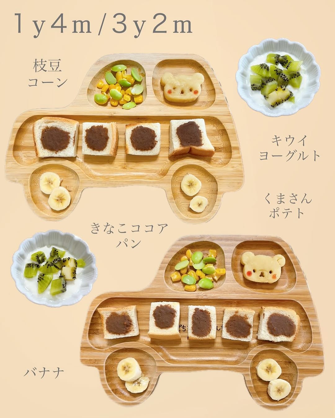 @65haruto ←他の投稿はこちら 1歳&3歳朝ごはん🧒🏻👶🏻☀️ 💡きなこココアパン きなこ、ココア、牛乳、砂糖少しを適当に混ぜて塗って 焼いたトースト🍞 実は栄養たっぷり✨ 忙しい朝でもサッと作れて、 子どもにも大人にも嬉しいメリットが◎ ・たんぱく質&カルシウム(きなこ+牛乳) → 成長期の骨づくりサポート ・鉄分・食物繊維(きなこ+ココア) → 幼児期に不足しがちな栄養を補える ・抗酸化作用(ココア) → 風邪予防にも◎ 簡単なトーストだけど、実は “栄養バランスのいい組み合わせ”。 朝ごはんにも、おやつにもぴったりです🍴 よかったら作ってみてね🧡 普通のきな粉でもいいけど 私は“鉄分きなこ”(楽天roomに載せてます)を使ってて より簡単に鉄分をしっかり摂ってもらってるよ✌🏻 —【使ったアイテム】———————————————————— ↓これらは @65haruto プロフ下の 楽天roomに載せています🌱 ★栄養ちょい足し ・こどもたんぱく(ココア) ・まんてんバランス ・こどもスパゲッティ ・鉄分きなこ ★食材 ・野菜フレーク ★グッズ他 ・ぷっくりマグ ・デコきゅう(星の卵焼き) ・こども食器 _______________________________________________ . #ワンプレートごはん #朝ごはんプレート #1歳ごはん #2歳ごはん #3歳ごはん #年子兄弟 #幼児食レシピ #離乳食レシピ #キャラごはん #こどもごはん記録 #子どもごはんメニュー #手づかみ食べレシピ #取り分けレシピ #栄養満点レシピ #かわいいごはん #子どもが喜ぶごはん #親子ごはんの悩みサポート