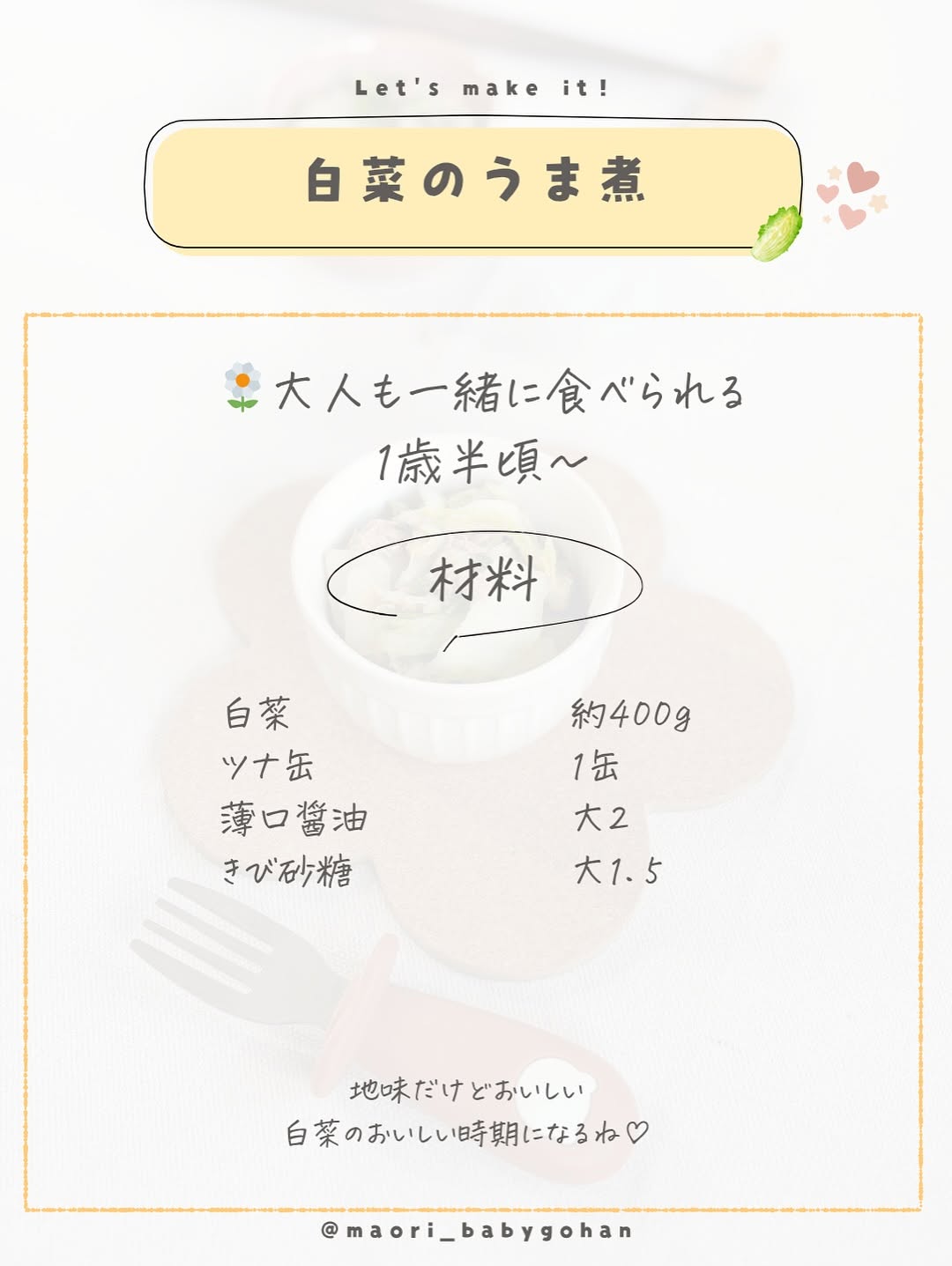 あと一品!ぜひこれを♡ おばんです〜あやかだよ( •︠ࠏ•︡ ) これから白菜が美味しくなる季節だね🥹 でもどう調理しようかなって悩んだとき ぜひともこれを作ってほしい🥺✨ 優しい味で、大人もこどももはまる☺️ あと一品!はこれに決まり😘 ちなみに白菜の食べ方は 鍋の次にこれがすきです😋 次回の話なんだけど 久しぶりにリールのレシピを投稿しようと思うの🥹 頑張って編集するから、 投稿したらいいねとかコメントよろしくね😭🩷 今回の投稿も保存しとくのがおすすめ🙌🏻 おすすめから来たみなさん♡ ぜひフォローしていってね🥹 離乳食・幼児食のレシピで悩まなくなるよ😊 ↓↓ @maori_babygohan すでにフォローしてくれてるまおりんずのみんな♡ いいね・コメントめちゃくちゃ嬉しいよ〜😭❤️🔥 今日もよろしくお願いします🙇🏻♂️圧圧圧ww いつもありがとう🫶🏻🌈 𓈒𓏸𓈒꙳𓂃 𓈒𓏸𓈒꙳𓂃 𓈒𓏸𓈒꙳𓂃 𓈒𓏸𓈒꙳𓂃 𓈒𓏸𓈒꙳𓂃 #離乳食 #幼児食 #白菜 #ツナ缶 #親子ごはんの悩みサポート