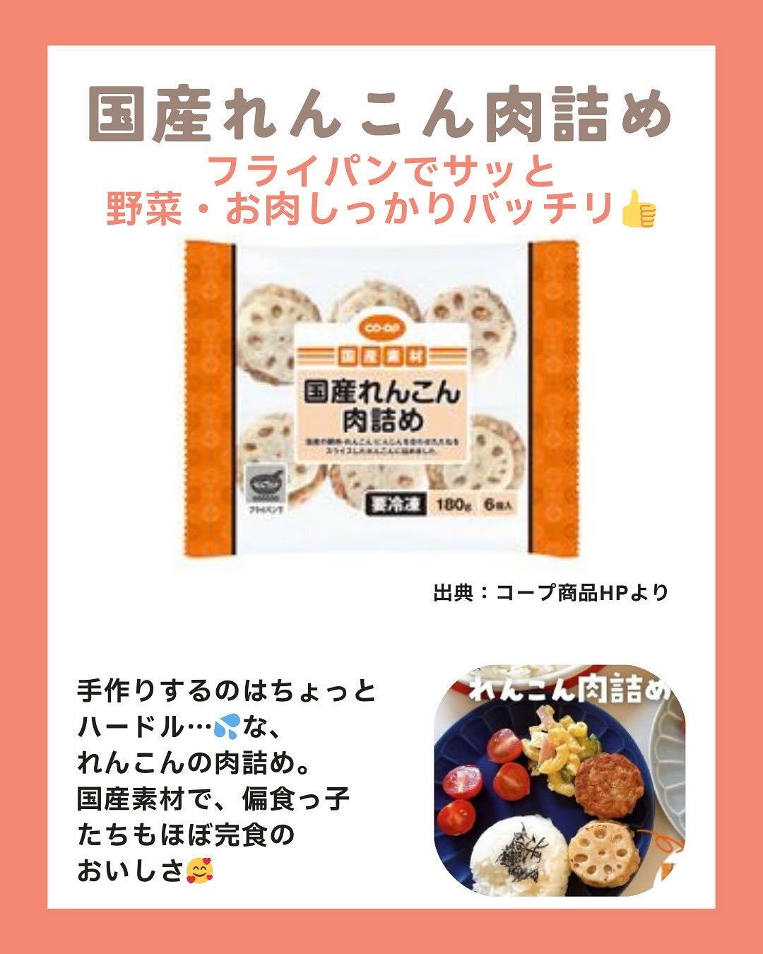 こんにちは! 「くふう キッズごはん」スタッフです💕 子育てファミリーに 絶大な人気の宅配サービスCO-OP!! 数多くの冷凍食品商品の中から 今回は、CO-OPインスタグラマー・あいさん (くふうキッズごはんサポーター) オススメのものをご紹介🥳 @aikau_san 2歳👦 6歳👧 8歳👦 の3人の偏食っ子ママのあいさん の折り紙付き✨ 夕ごはんにピッタリのものばかり! おいしい😋 高品質🫶 コスパよし💰 の3拍子そろった こどもウケ抜群のCO-OP冷食を常備して もっと気楽に夕ごはん準備、やっていこ〜📣 ======================= くふう キッズごはんは、 子育て中のママパパが“もっと気楽に もっと楽しく” こどもごはんと向き合えるように、 ▶️レシピ ▶️外食情報 ▶️レトルト・冷食活用 ▶️便利グッズ などの情報を発信しています✨ 好き嫌い&食べムラ向けレシピもたくさん🍅🥦 こどもごはんづくりのヒントにしてくださいね💖 \詳しくはプロフィールリンクからチェック/ :右向き指差し: @kufu_kidsgohan #親子ごはん #幼児食 #夕ごはん #ごはんづくり疲れた #ごはん作りたくない日 #ママライフ #共働きごはん #くふうキッズごはん #親子ごはんの悩みサポート #保存推奨 #お得情報 #CO-OP #生協