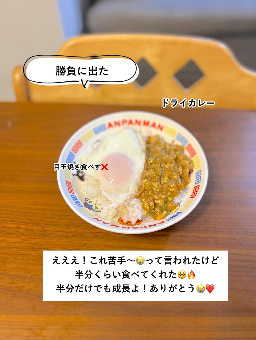 息子の食べムラ克服中です🔥 @tabemura_ychan 最近の夜ご飯🥣 なんか、手抜き多いね…笑 でもドライカレー作って食べてくれた時は 本当に嬉しかったよー😭😭😭✨ 昔だったら、ぜーーーったい座りもしない。笑 本当に、こどもの成長ってすごいですね。🥲 #食べムラ#5歳ごはん #リアル飯 #偏食 #5歳男の子#こどもごはん #親子ごはんの悩みサポート