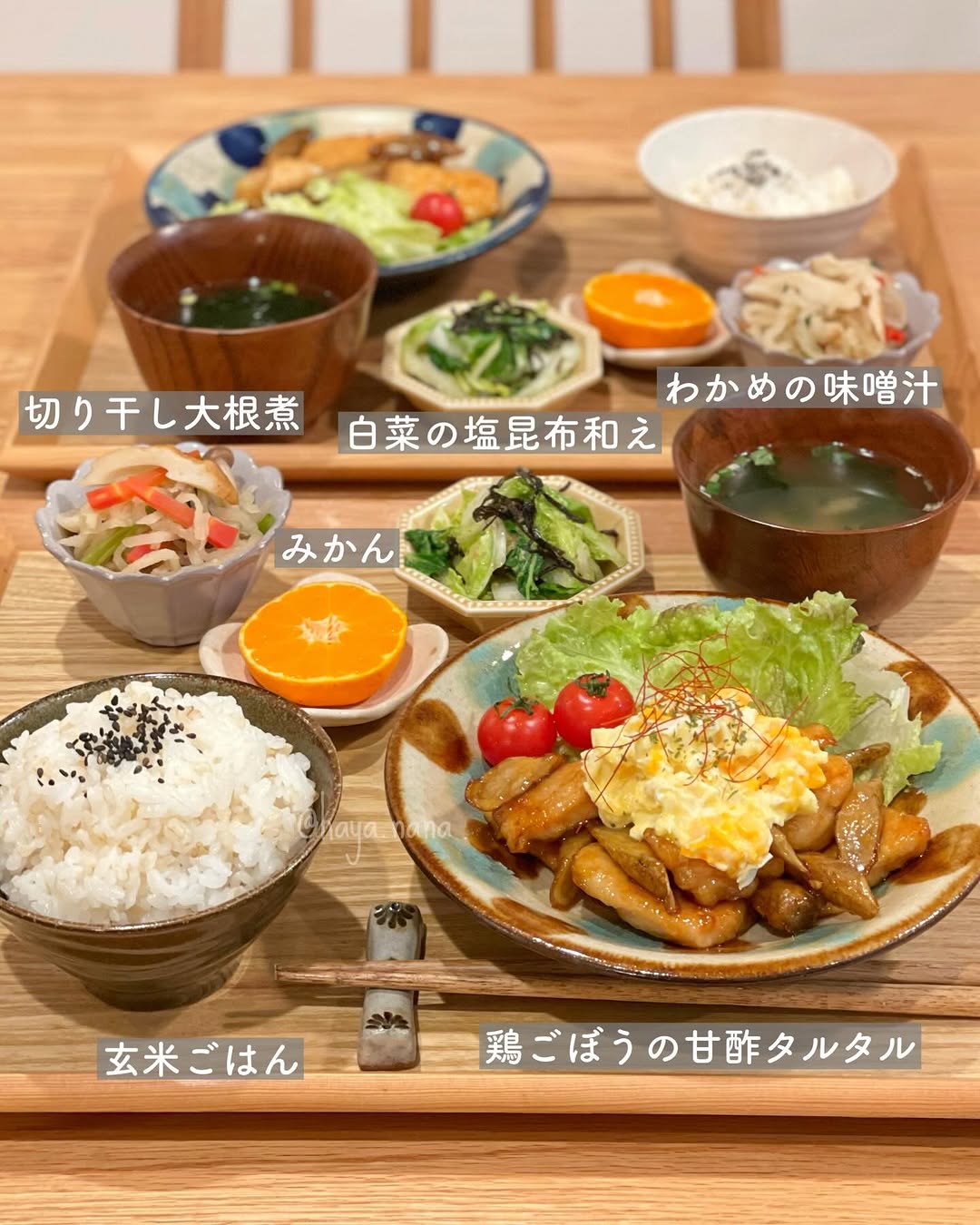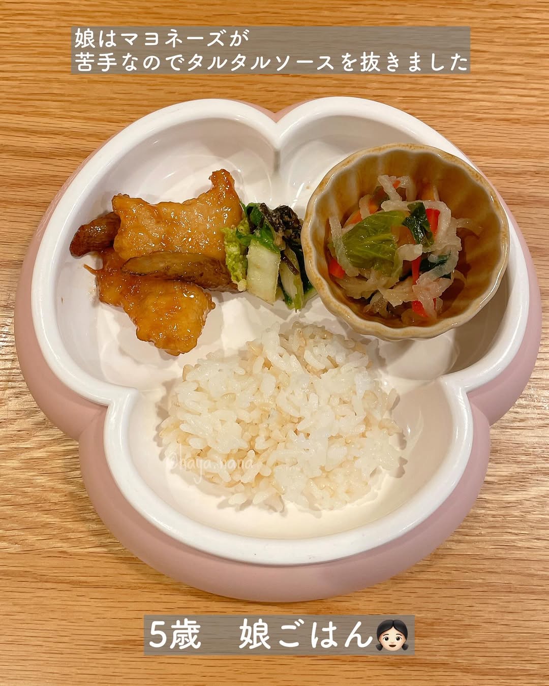 👉レシピあり ✍️【家族ごはん♡】 *鶏ごぼうの甘酢タルタル(レシピあり) *切り干し大根煮 *白菜の塩昆布和え *わかめの味噌汁 *ごはん *みかん こんばんは☺️ おせちで使ったごぼうが1本、冷蔵庫に余っていたので 鶏肉と焼いて甘酢ダレで絡めた、タルタルチキンを作りました🍳 ごぼう入りのチキン南蛮という感じです✨ 鶏むね肉はカットして砂糖、塩、酒で揉み込んだ状態で冷凍しておくことが多いです♪ 使う時は前日から冷蔵庫に移します☺️ 鶏モモで作る時は塩胡椒のみで大丈夫です👌 カンタン酢がない場合は穀物酢等で代用し、お砂糖の量を追加して調整してください◎ ******* ▼娘の離乳食〜幼児食記録はこちら @hayanana_baby ******* 今日は寒かったですね〜💦 娘とお出かけしていたらこんなに寒いのに、娘はアイスが食べたい🥺✨と…(笑) えー🙄と思いましたがお年玉を握りしめてキラキラなおめめで見つめられたら…どうぞ😇と言うしかなかった!😂 寒い中、ぶるぶる震えながらガリガリくんを食べていた娘でした❤️🔥 *::::::::*::::::::*::::::::*::::::::*::::::::*::::::::*::::::::* #おうちごはん #料理記録 #家族ごはん #献立日記 #親子ごはんの悩みサポート