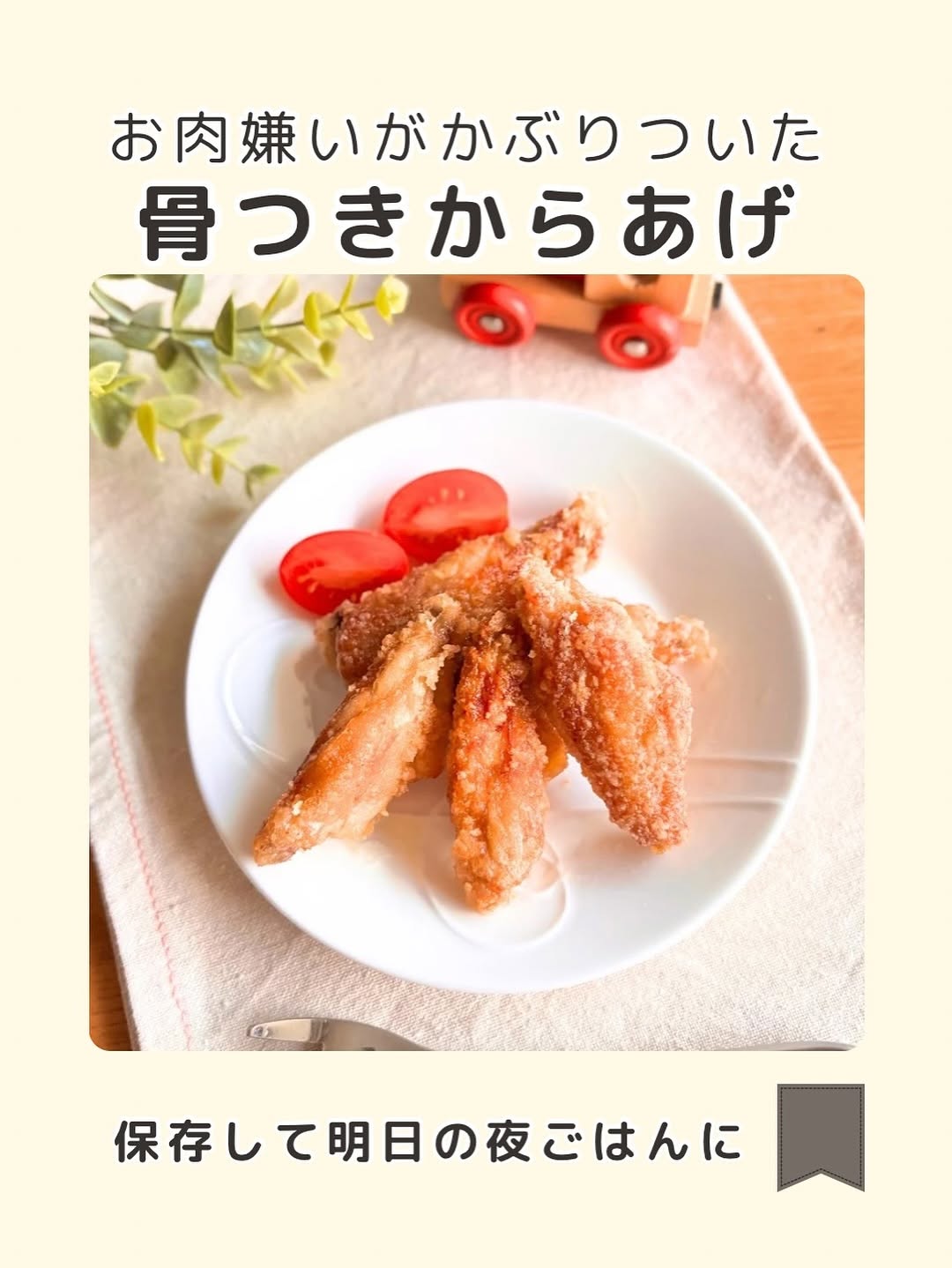 人気レシピはここから▶︎ @yuzu_kodomo.gohan \カリッ!ジュワ〜!骨つきからあげ🍗/ 普段お肉食べない息子もこれだけは爆食✨ 下味をしっかりつけて揚げ焼きにするだけで、ジューシーすぎる仕上がりに💛 お弁当や週末ごはんにもおすすめ◎ 保存して次のからあげはこれで決まり👏🏻 #からあげ #手羽中の唐揚げ #ゆずのごちそう #親子ごはんの悩みサポート