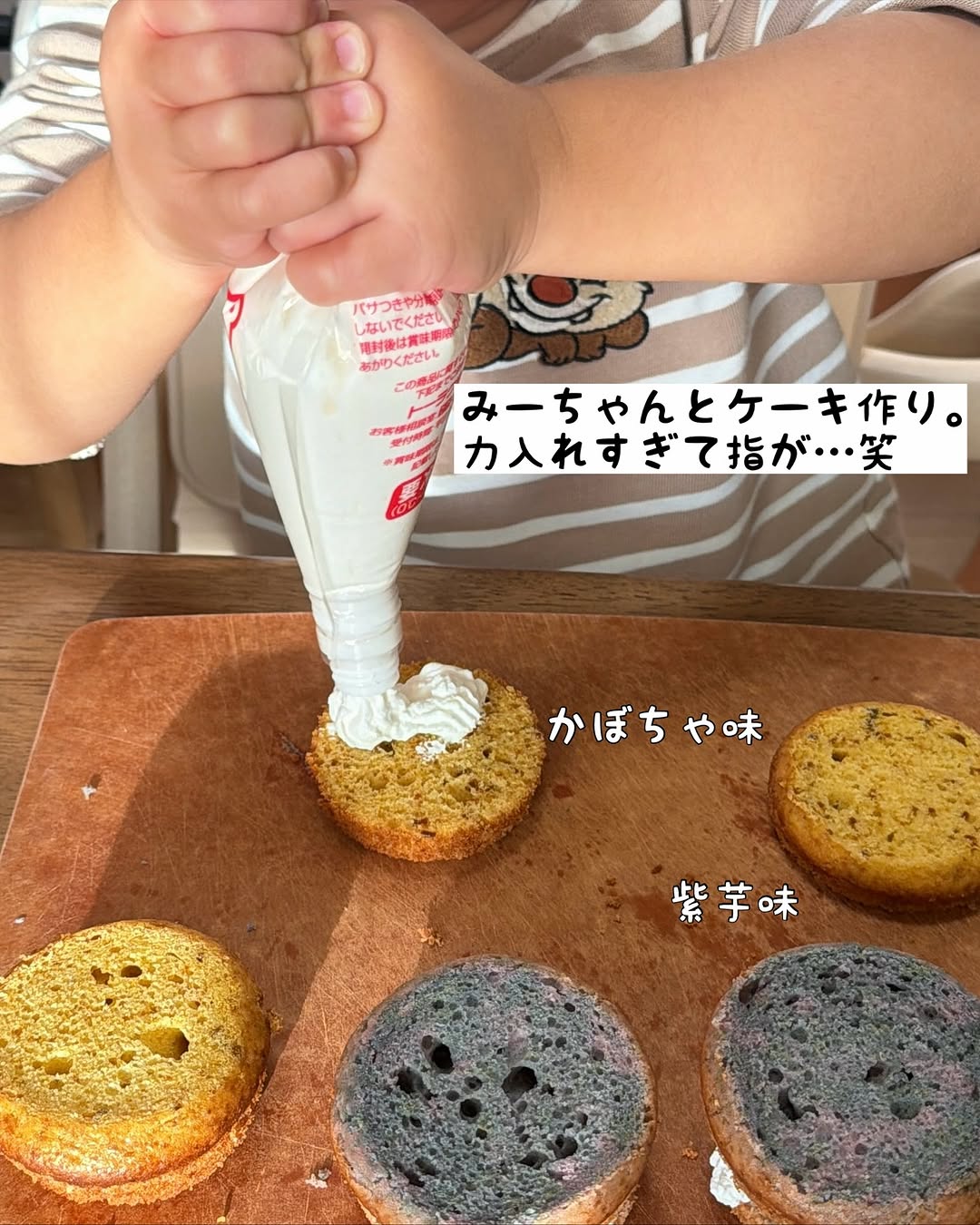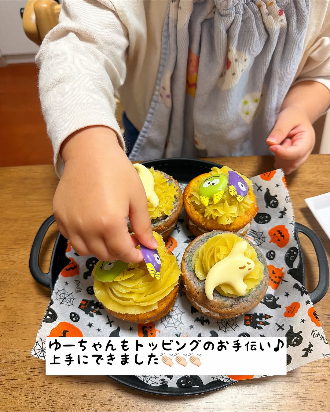 👻 🧡Happy Halloween💜 昨日1日早いハロウィンパーティーをしました🎃 みーちゃんからケーキとクッキーを作りたい!と 言われていたので朝からバタバタと準備。(5時起き!) みーちゃんをお迎えしてから、一緒にケーキのトッピングと クッキー作りをしました。 みーちゃんもゆーちゃんもすごく楽しんでくれて母は満足😌 英会話教室でもハロウィンパーティーをしたようで 今年はたくさんハロウィンを楽しんだみーちゃんでした🥰 #3歳#2歳ごはん#3歳ごはん#1歳ごはん #幼児食#幼児食レシピ#幼児食メニュー#こどもごはん#こどもごはん#幼児食記録 #親子ごはんの悩みサポート#happyhalloween #ハロウィン#ハロウィンごはん