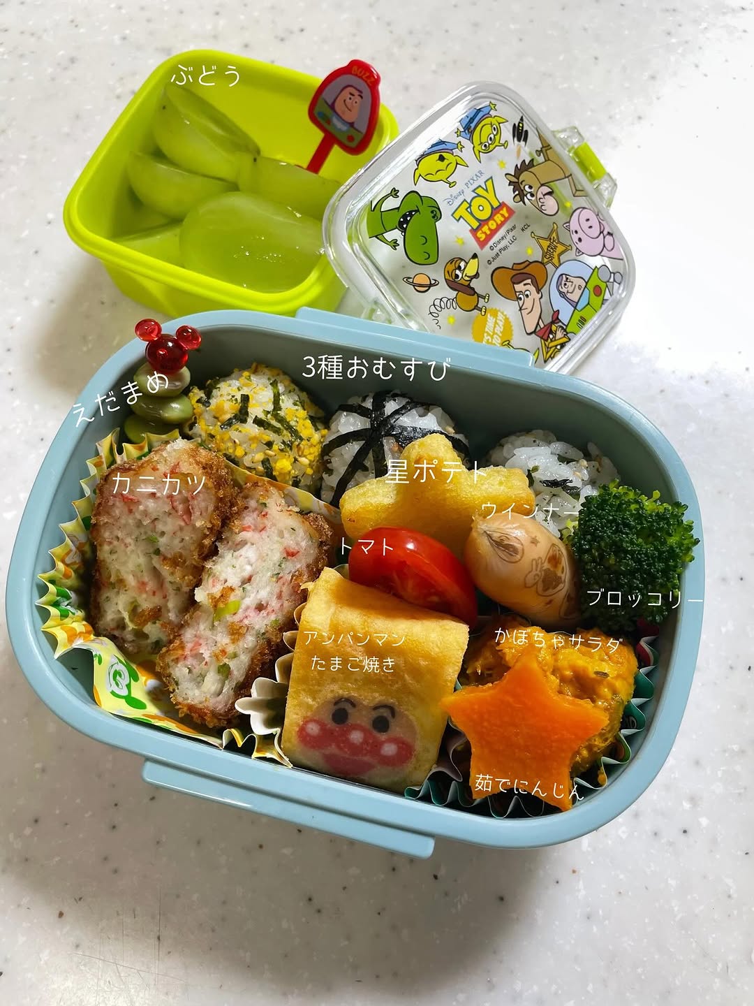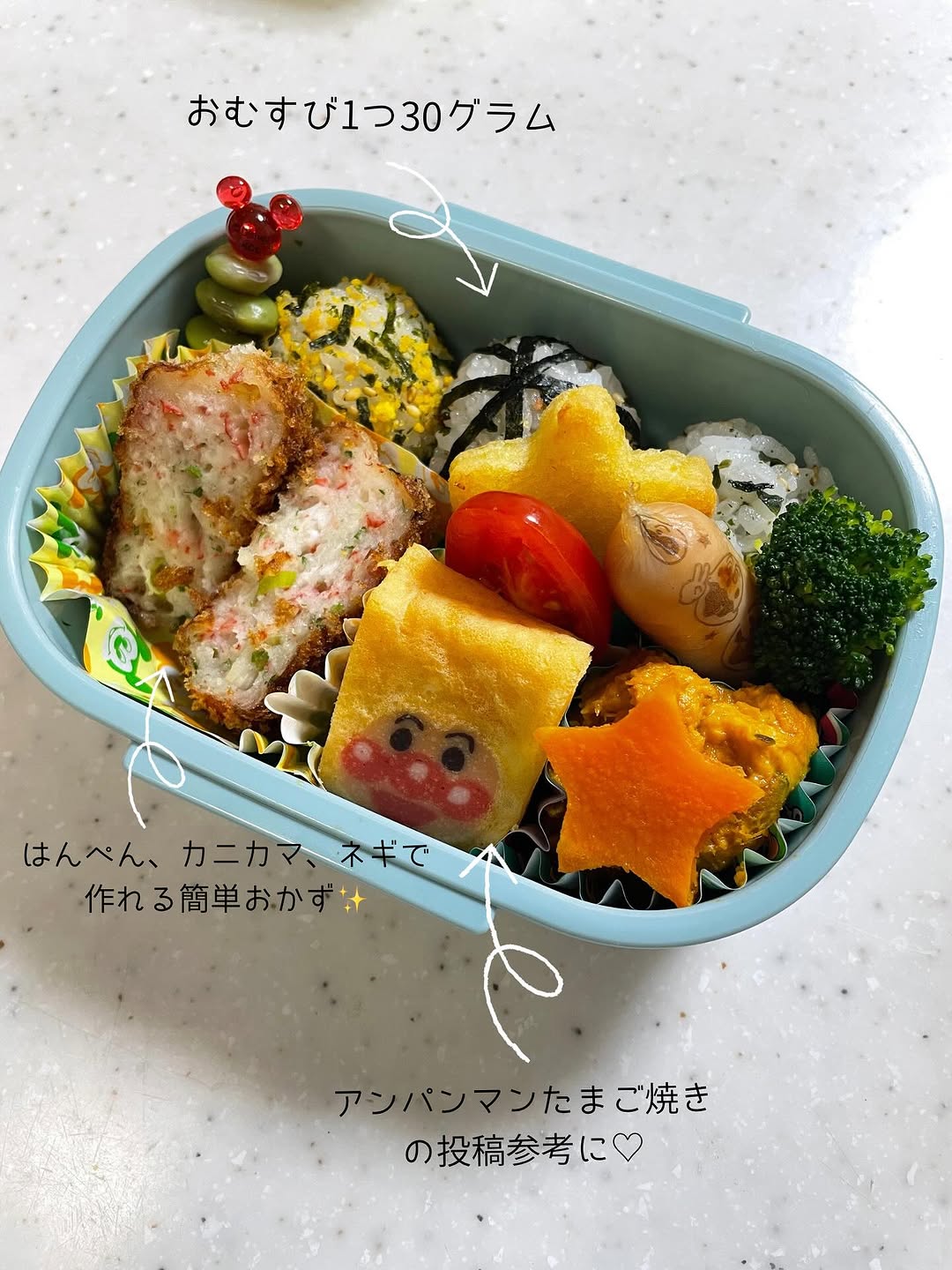. 𓅯 ⸒⸒ 幼児食記録 ▶︎▷ 3y10m ◁◀︎ . . . ᝰ✍︎꙳⋆ ┈┈┈┈┈┈┈┈┈┈┈┈ . 過去レシピは #omiレシピ にきろくᝰ✍︎꙳⋆ . 坊っちゃんおべんとうの日👦🏻 . ぜーんぜんメニューも案も浮かばず🥺 とりあえず本人ご要望、小さいおむすびに🍙 . まだアンパンマン好きな坊っちゃん👦🏻 いよいよアンパンマンブームも終わりそうなので たまご焼きとウインナーにアンパンマン🎖️ . 久しぶりにアンパンマンたまご焼き作ったけど 簡単きゃわいい、さいこう🥺 . メインのおかずはカニカツ🦀 . はんぺん、かにかま、ネギ、牛乳、片栗粉 ブンブンチョッパーして丸めてパン粉つけて 揚げるだけ☺️🤍 . ミートボール続きだったけん、魚系に🐟 . 帰って、 ぜーーんぶ食べた!ママ!ありがとう😚 って言ってくれる坊っちゃん。 . 推し活がとまらん。← . . 秋を探しにみんなでお出かけして楽しかったみたい☺️ . 夜はぐっすり 1人でベッドに行って1人ですんなり寝てました🤣❤️ . #初産#1月生まれ#男の子ママ#第1子#記録用_omi#育児記録#新米ママ#広島ママ友達募集中#令和4年ベビー#3歳児ごはん#ワンオペ育児#ワンオペ育児ママ#ママが楽する#幼児食記録#ズボラ幼児食#幼児食#幼児食献立#ワーママ幼児食#幼児食と大人ごはん#親子ごはんの悩みサポート#幼児弁当#お弁当#親子ごはん