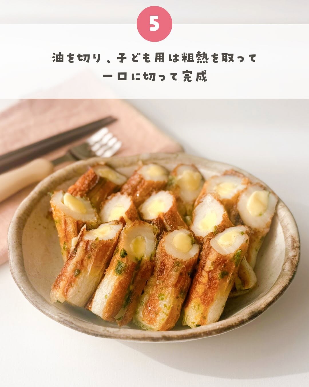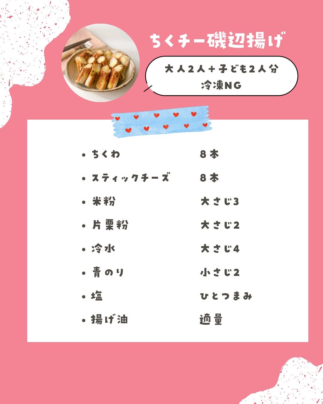 ㅤㅤㅤㅤㅤㅤ ㅤㅤㅤㅤㅤ ㅤㅤㅤ 子どもも大人も大好きなちくわの磯辺揚げ🤤🙌🏻 揚げ物ってめんどくさいけど、 これは揚げ焼きだからめちゃ楽で🥹✨ ちくわにチーズ挟んで衣つけて焼くだけの簡単レシピだから、 忙しい日にもぴったりだよ〜! チーズは溶けやすいから、 お子さんにあげるときは一口大に切って温度にも気をつけてね⚠️ 米粉で作るとサクッと軽く仕上がるから、 子どもも食べやすいよ☺️🌼 娘は爆食いして、無くなったら「また食べたい」と 言うくらい喜んでくれたよ🥹みんなも作ってみてね! ㅤㅤㅤㅤㅤㅤ ㅤㅤㅤㅤㅤ ㅤㅤㅤ 【ちくチー磯揚げ】の作り方🌿 🥣 材料(大人2人+子ども2人分) ☑︎ ちくわ 8本 ☑︎ スティックチーズ 8本 ☑︎ 米粉 大さじ3 ☑︎ 片栗粉 大さじ2 ☑︎ 冷水 大さじ4 ☑︎ 青のり 小さじ2 ☑︎ 塩 ひとつまみ ☑︎ 揚げ油 適量 🥣 作り方 ❶ ちくわに縦に切り込みを入れて開く ❷ ちくわの中央にチーズをのせ、巻き戻して形を整える ❸ 米粉・片栗粉・青のり・塩を混ぜ、衣を作る ❹ 衣をからめ、フライパンに油をひき中火で揚げ焼きする ❺ 油を切り、子ども用は粗熱を取って一口に切って完成 ┈┈┈┈┈┈┈┈┈┈┈┈┈┈┈┈┈┈┈┈ ゆい┊作り置きで楽する離乳食 幼児食 ▷ @yui.kids_gohan \チンするだけ!3分で準備できる離乳食•幼児食🌷/ ◡̈ ¦平日楽できる作り置きレシピ多数🥣 ◡̈ ¦毎日ごはんや🉐情報はストーリー限定👀ˎˊ˗ ◡̈ ¦時間と心にゆとりができ親子でハッピー🤍 👧🏻3y┊食べムラ娘のため試行錯誤中🍳 「1週間マネするだけ!取り分け幼児食献立BOOK」 を作成しました🙌🏻✨ →プロフィールのリンク「幼児食献立BOOK」又は ハイライトの「献立BOOK」 から🌼 いいね/コメント/保存/フォロー 離乳食作りの励みになります🤍 ┈┈┈┈┈┈┈┈┈┈┈┈┈┈┈┈┈┈┈┈ #幼児食 #幼児食献立 #幼児食レシピ #幼児食記録 #幼児食メニュー #幼児食アカウント #フリージング幼児食 #幼児食ストック #幼児食ストック作り #幼児食フリージング #幼児食作り方 #幼児食作り #フリージングストック #フリージング #幼児食作り置き #幼児食冷凍ストック #取り分け幼児食 #取り分けレシピ #取り分けごはん #取り分けご飯 #子どもごはん #こどもごはん #親子ごはんの悩みサポート #ちくわレシピ #ちくわ料理 #磯辺揚げ #簡単レシピ #揚げ焼きレシピ