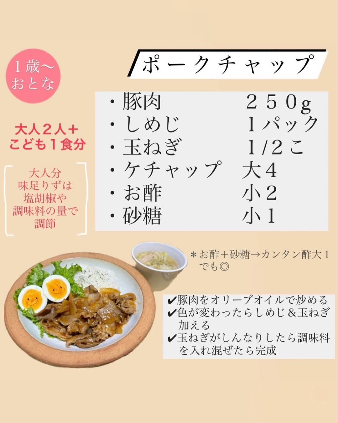 @65haruto ←他の投稿はこちら 1歳&3歳晩ごはん🧒🏻👶🏻🌿 💡今回の一品紹介”ポークチャップ” 実はこのポークチャップ、 栄養の相乗効果あり👀✨ 🥩豚肉+🧅玉ねぎ → 疲労回復ビタミンB1の吸収率UP 🍄きのこ → 腸内環境を整えて、エネルギー効率も◎ ごはんが進むだけじゃなく 体もちゃんと元気になる組み合わせ🍚🤍 大人も子どもも嬉しい一皿です☺️ . —【使ったアイテム】———————————————————— ↓これらは @65haruto プロフ下の 楽天roomに載せています🌱roomで検索してね🔍 ★栄養ちょい足し ・こどもうまみそ ・こどもかぼぽた ・だしふりかけ ・にこにこ鉄分 ・雑穀米 ★食材 ・お麩(カラふル🌸) ・とろりんスープ ★グッズ他 ・こども食器 ・千切りスライサー ・のりパンチ ・のりあーと _______________________________________________ . #ワンプレートごはん #晩ごはんプレート #アンパンマン #1歳ごはん #2歳ごはん #3歳ごはん #年子兄弟 #幼児食レシピ #離乳食レシピ #キャラごはん #こどもごはん記録 #子どもごはんメニュー #手づかみ食べレシピ #取り分けレシピ #栄養満点レシピ #かわいいごはん #子どもが喜ぶごはん #親子ごはんの悩みサポート