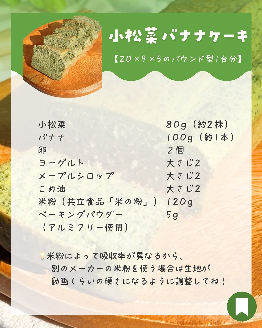 つくれぽ数No.1✨ @maro_mamagohan ◁ 食べムラっ子も爆食する”神レシピ”発信中💌 フォローして一緒に食べムラ乗り切ろう✊🏻✨ まろレシピ人気・圧倒的No.1✨ 3万人が保存してくれた【小松菜バナナケーキ】を、もっと作りやすいようにフィード投稿にしたよ🤗 たくさんの人がフォローしてくれるきっかけになった、私にとって1番思い入れのあるレシピ🫶🏻 「葉物は絶対に食べてくれないのにこれは食べた!」 「親子で大好きすぎてリピしまくってる!」 ってつくれぽも本当に多くの人からもらって嬉しかった〜🥹 まだ作ったことがない人はぜひ作ってみてね🤗 p.s. 「どこのですか?」って質問をよくもらうパウンドケーキ型は、プロフィール下部の楽天roomで【パウンド】と検索してね🔍 人気すぎて売り切れが続いてたけど、今は在庫安定したよ☺️ もう20回は使ってるけど、油や敷紙いらずでスルッと外れてめちゃくちゃ重宝してる💕 この感動、みんなと分かち合いたい〜🥹✨ ________________ 最後まで読んでくれてありがとう♪ 2歳児を育てるワーママ まろです😊 このアカウントでは ◎ 食べムラっ子がパクパク食べる ◎ 1歳から大人までおいしい 簡単レシピを発信中🍳 ✔︎ もう食べムラにイライラしたくない😢 ✔︎ ごはん時間を楽しく過ごしたい! 👉🏻フォローして、一緒に笑顔で食べムラを乗り切ろう💓 フォロー / いいね / コメント / DM どれもとっても嬉しいです😆 お気軽に絡んでね♪👉🏻@maro_mamagohan #幼児食 #偏食 #食べムラ #親子ごはんの悩みサポート #小松菜レシピ