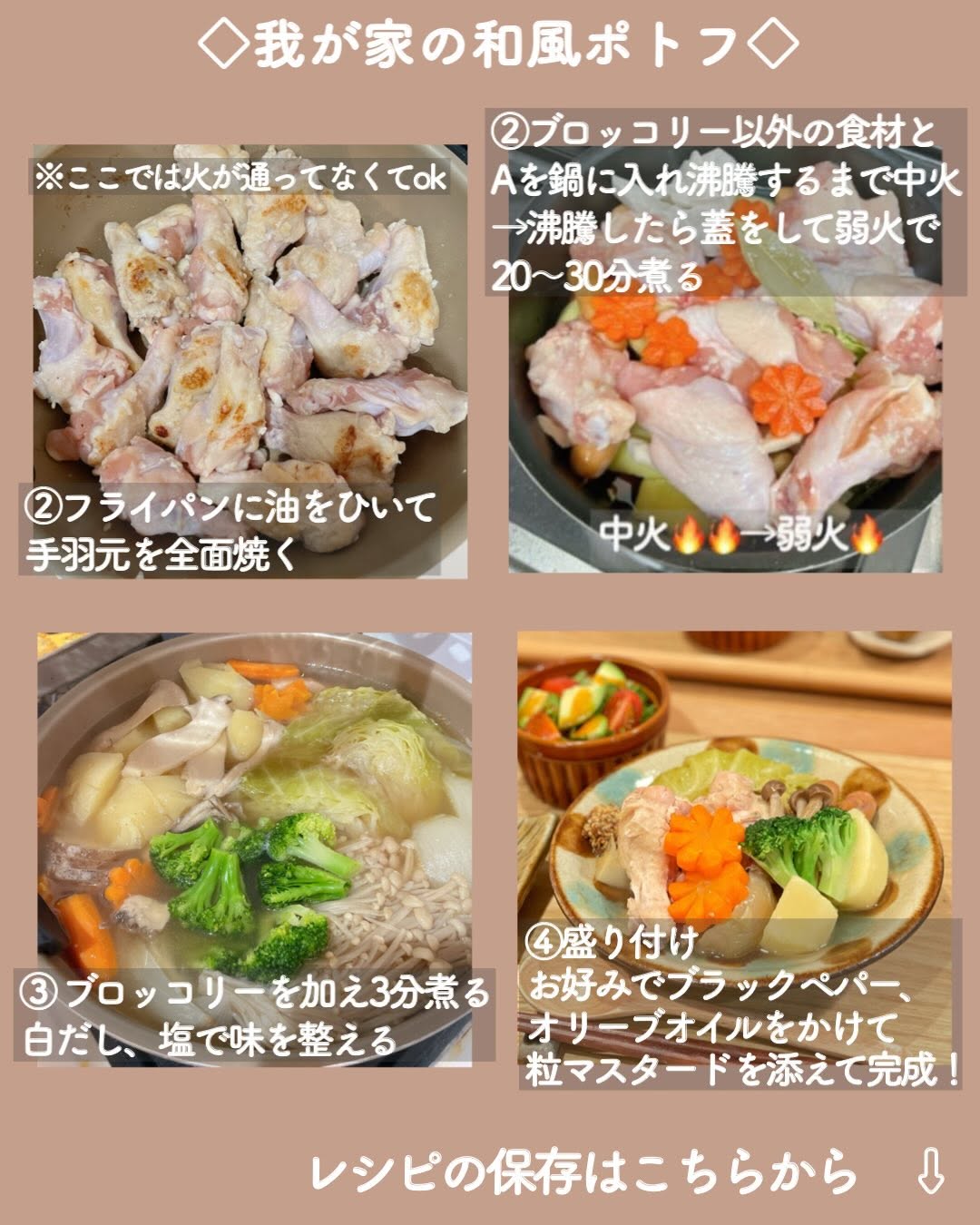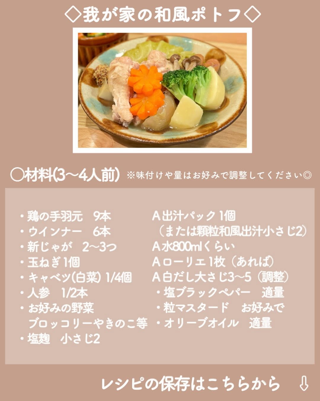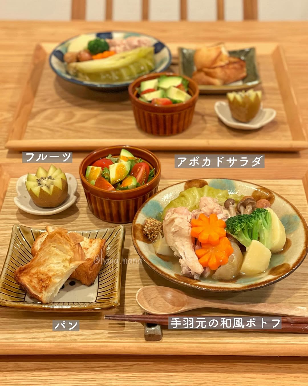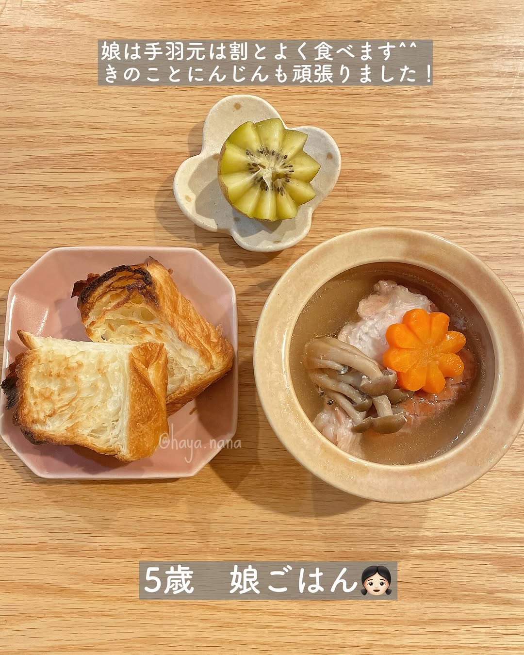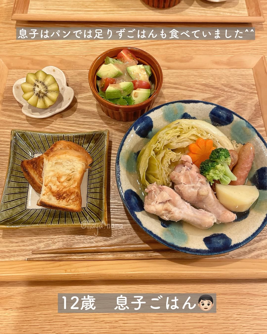 👉レシピあり ✍️【家族ごはん♡】 *手羽元の和風ポトフ(レシピあり) *アボカドサラダ *デニッシュ *キウイ こんばんは☺️ 手羽元がお買い得だったので久々に和風ポトフを作りました🫕 次の日に手羽元カレーにアレンジしたかったので レシピの分量よりも多めに作りました📝 *手羽元→手羽中や、厚切りベーコンなどで代用しても◎(ベーコンの場合は下味不要です) *白だし→コンソメキューブ2個で代用すると普通のポトフになります🫕 *新じゃが→普通のじゃがいもでも大丈夫👌新じゃがで作るポトフが好きすぎるのであえて「新じゃが」と書いています✐☡笑 *野菜→れんこんやえのき、大根等お好みで追加や代用してください🙌 *ご飯のおかずとして食べたい…という場合→ニンニク1〜2片(包丁の腹で潰す)と生姜スライス3〜4枚を追加するとパンチの効いた味になります◎レシピ通りよりもご飯に合うかも🙆♀️ ******* ▼娘の離乳食〜幼児食記録はこちら @hayanana_baby ******* 土日が一瞬で過ぎてしまう〜💦 夫も私も仕事が忙しい時期なので今が踏ん張りどき…!! お料理も子育てもお仕事も楽しみつつ、マイペースに頑張ります🙌 *::::::::*::::::::*::::::::*::::::::*::::::::*::::::::*::::::::* #おうちごはん #料理記録 #家族ごはん #献立日記 #親子ごはんの悩みサポート