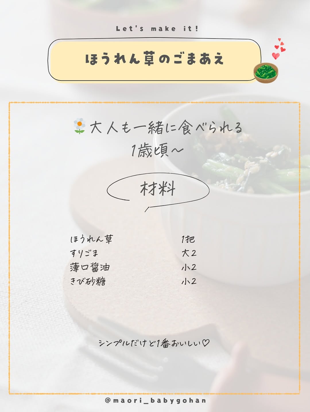 もう一品!!ってときの救世主🦸🏻♀️🩷 おばんです〜あやかだよ( •︠ࠏ•︡ ) 今回は作っておくと超便利な副菜シリーズ🥹 しかも簡単でおいしい優れものよ〜🥰 優しい味のごまあえで 苦手なほうれん草も食べられるかも😳?! 一回は絶対作ってみてね☺️ 今回の投稿も保存しとくのがおすすめ🙌🏻 おすすめから来たみなさん♡ ぜひフォローしていってね🥹 離乳食・幼児食のレシピで悩まなくなるよ😊 ↓↓ @maori_babygohan すでにフォローしてくれてるまおりんずのみんな♡ いいね・コメントめちゃくちゃ嬉しいよ〜😭❤️🔥 今日もよろしくお願いします🙇🏻♂️圧圧圧ww いつもありがとう🫶🏻🌈 𓈒𓏸𓈒꙳𓂃 𓈒𓏸𓈒꙳𓂃 𓈒𓏸𓈒꙳𓂃 𓈒𓏸𓈒꙳𓂃 𓈒𓏸𓈒꙳𓂃 #離乳食 #幼児食 #ほうれん草 #ほうれん草のごまあえ #副菜 #親子ごはんの悩みサポート