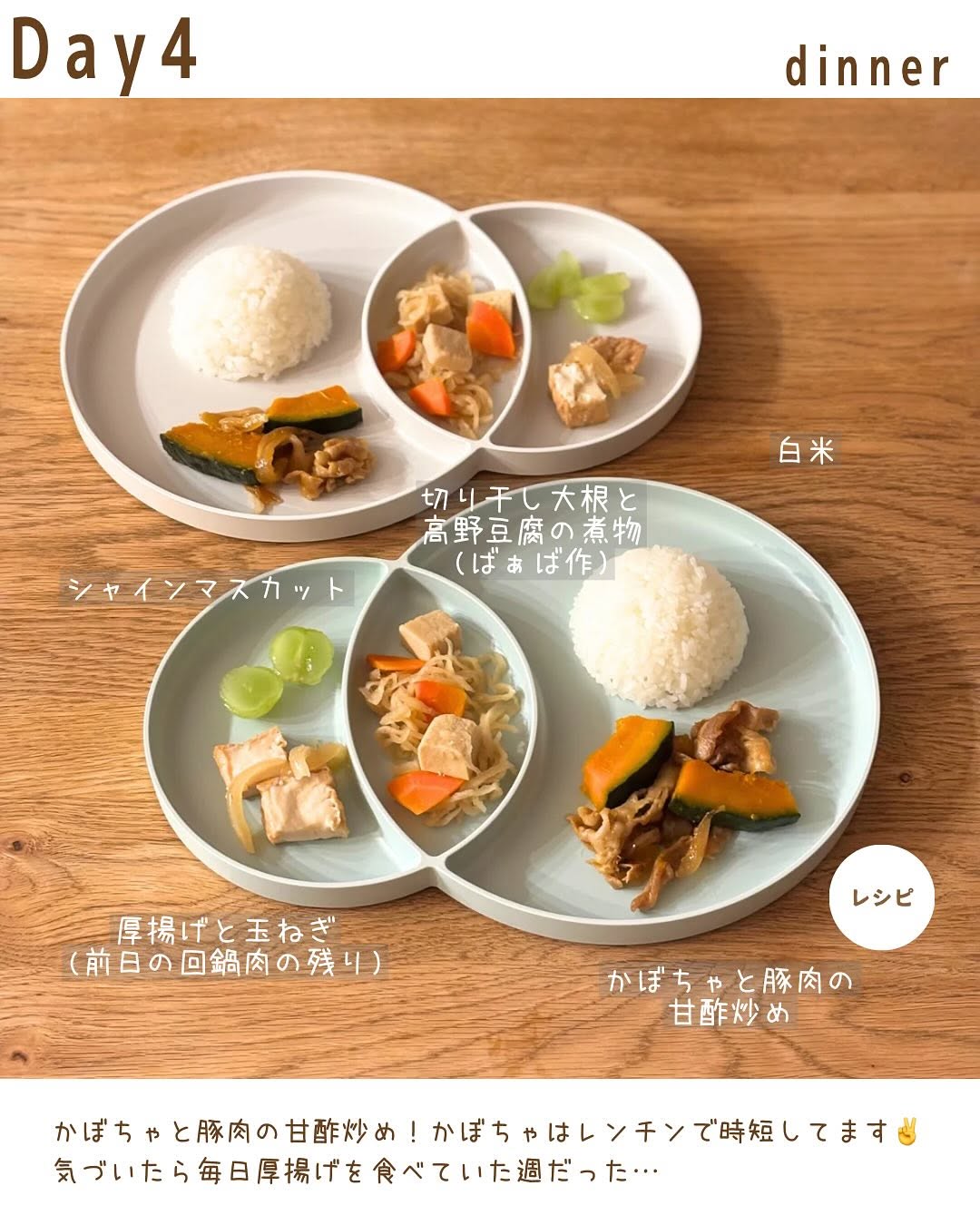 ❁4歳&2歳 4日分献立 4歳長男と2歳次男の とある日の夜ごはん4日分です⸝⋆ 子どもたちがまず食べるだろうというものばかり 作っているので いつも同じようなもの作ってる… いや、作ってるだけえらいよね!!! とりあえず自動調理ポットと厚揚げは 我が家の必須アイテムです😊 _________________ 𖧷2歳差兄弟の幼児食・離乳食を投稿をしています 𖧷フォロー&コメント嬉しいです! 気軽に仲良くしてください♡ˎˊ˗ #そうちゃんのごはん記録 #幼児食 #幼児食献立 #幼児食メニュー #こどもごはん #子供ごはん #4歳ごはん #2歳ごはん #献立 #一週間献立 #親子ごはんの悩みサポート