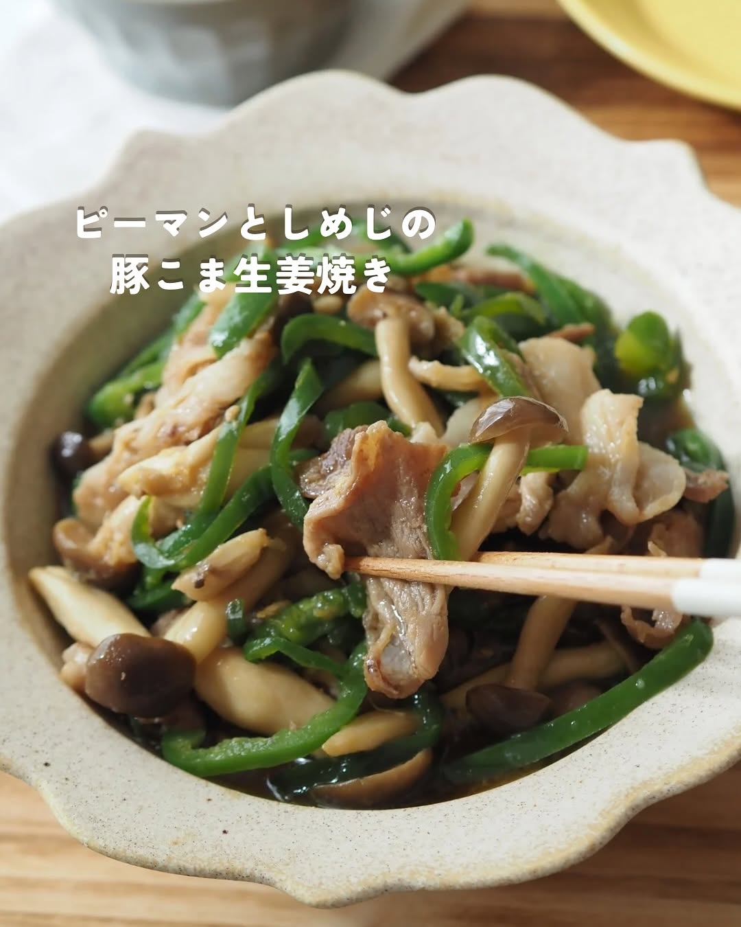 ピーマンとしめじの豚こま生姜焼き🐷 うちの生姜焼きは だいたい豚こまで作るんですが、 今回