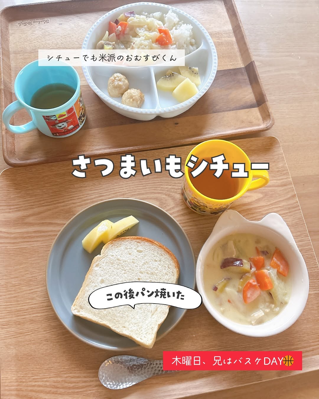 2歳6歳8歳の晩ごはん🌙 おむすびくんの食べ方が汚すぎて😨 シチューとかカレーは めーーーっ
