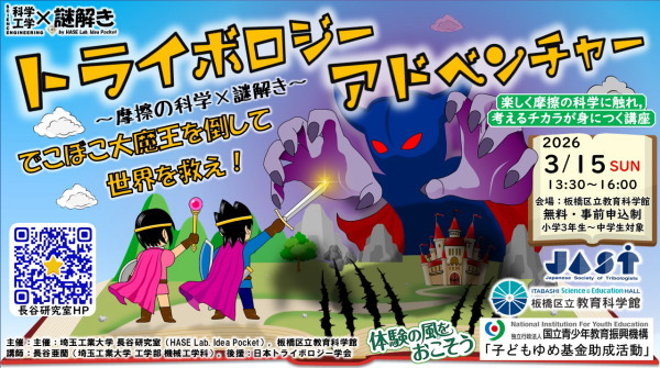 ツルツル、ザラザラってなんだろう🔍 「摩擦」の不思議をテーマにした、冒険型の科学イベントが開催されるよ 🧪 ミッションをクリアしながらトライボロジー(摩擦の科学)について楽しく学んで、世界を困らせる「でこぼこ大魔王」を倒す手がかりを見つけ出そう ⚡ 遊びながら理科が大好きになっちゃう大興奮のアドベンチャー 🔬