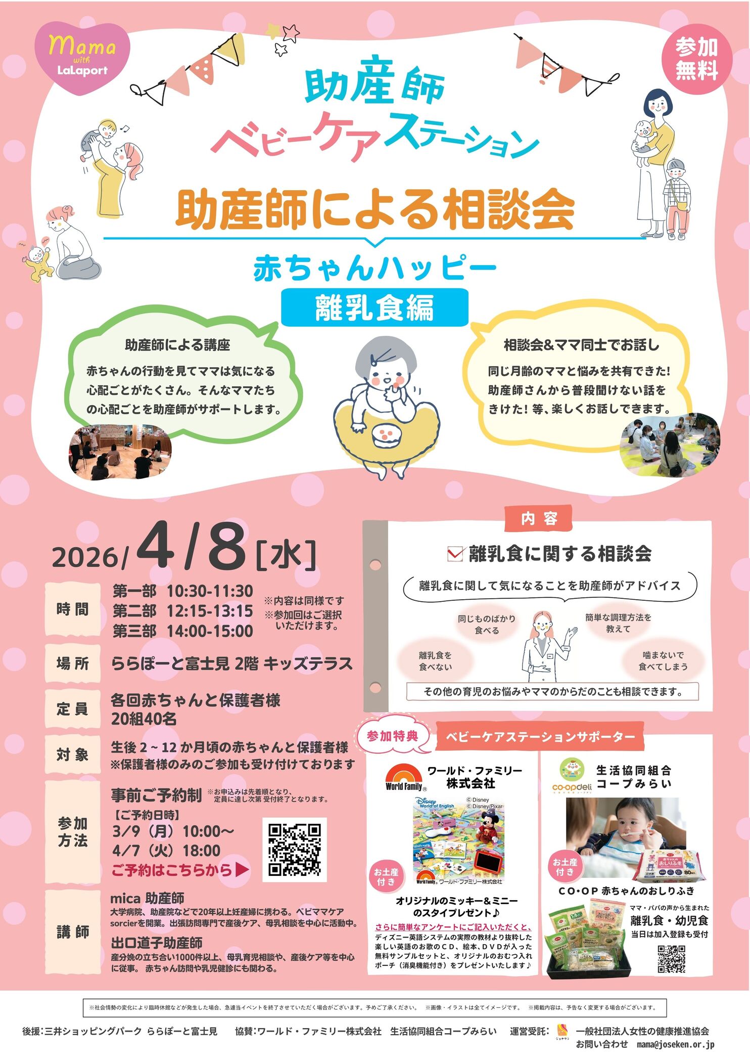 ららぽーと富士見で助産師さんによる離乳食相談会✨ 離乳食の進め方やお悩みを個別に相談できるよ!お買い物ついでに参加できるのが嬉しい 🌸