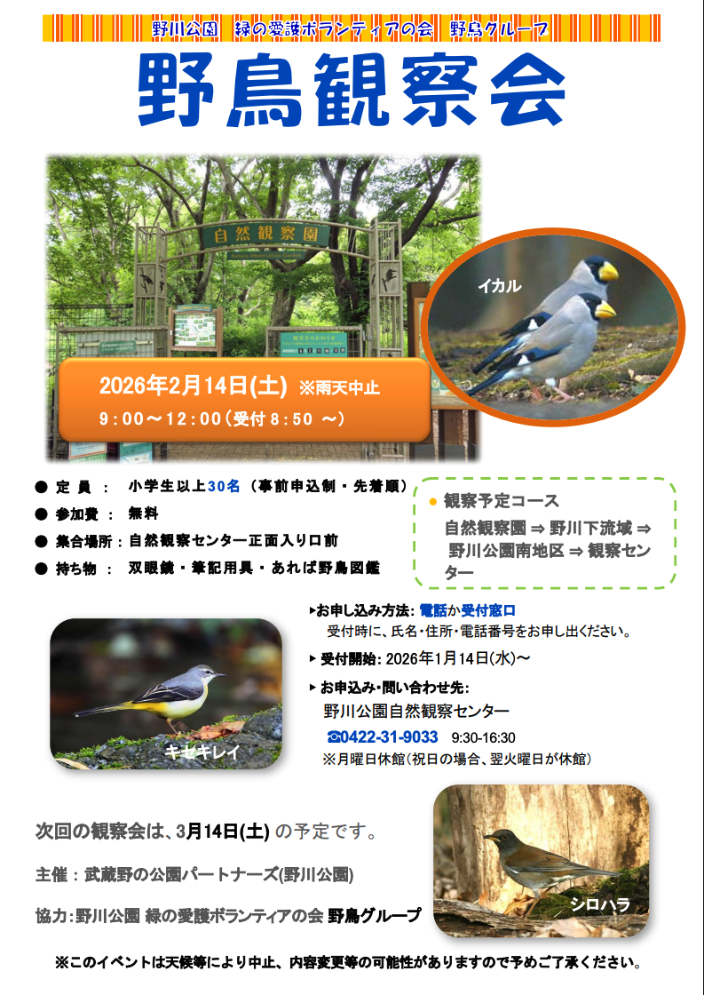 木々の葉が落ちる冬は野鳥観察のベストシーズン!ガイドさんの解説付きだから初心者でも安心🔰色々な鳥の声や姿を見つけて、鳥博士になっちゃおう🦉公園の豊かな自然を感じられる癒やしの時間です🌿