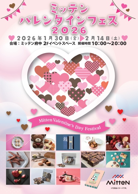 ミッテン府中でバレンタインイベント開催!手作り体験や可愛いフォトスポット、限定スイーツなど盛りだくさん🍰親子でチョコを選んだり、自分へのご褒美にもいいね🥰駅前だから寒くてもへっちゃら👍