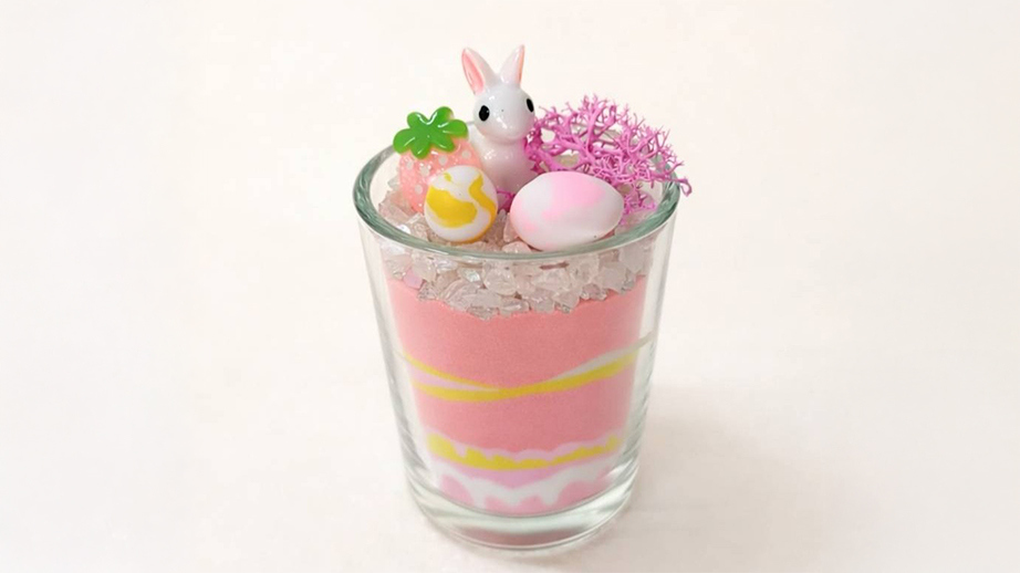 色とりどりの砂を重ねて、うさぎや卵を飾ろう🐣イースターにぴったりの可愛いオブジェ作りワークショップです。お部屋に飾れば一気に春気分🌸自分だけのカラーコーディネートを楽しんで!