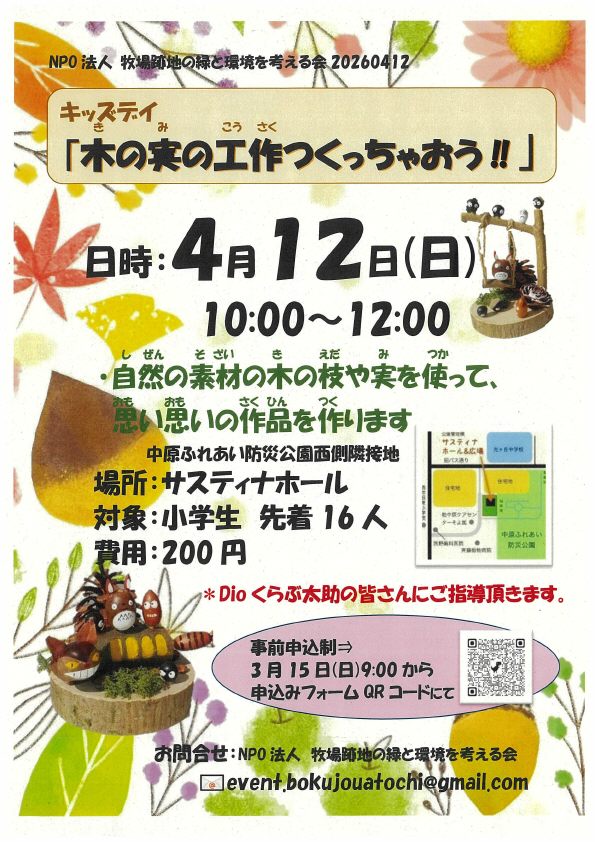 木の実で工作ができちゃう🌰✨無料だからお気軽に参加できるよ💕自然の素材を使った創作活動で、子どもの想像力がぐんぐん広がっちゃう🎨作った作品をおうちに飾ったら、子どもも大満足!春の季節を感じる素敵な工作体験