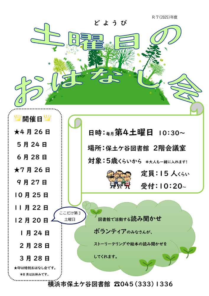 出典:保土ケ谷図書館 土曜日のおはなし会 公式サイト