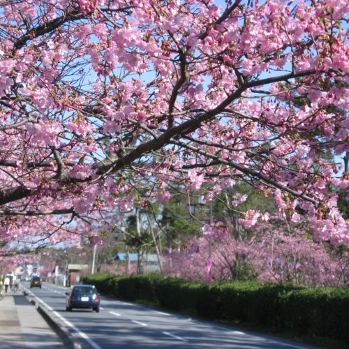 千葉で一足早い春を感じるならココ!県道沿いに約500本の河津桜が咲き乱れます🌸ピンクのトンネルは圧巻の美しさ😍夜はライトアップされて幻想的に✨足湯に浸かりながらお花見なんて最高すぎる♨️🍡 #白子温泉 #河津桜 #お花見
