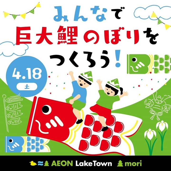 イオンレイクタウンmori 2F ジーンズファクトリーララ向かいで開催✨ 無料でみんなの手形が巨大鯉のぼりに!記念になるよ 🎏🖐️