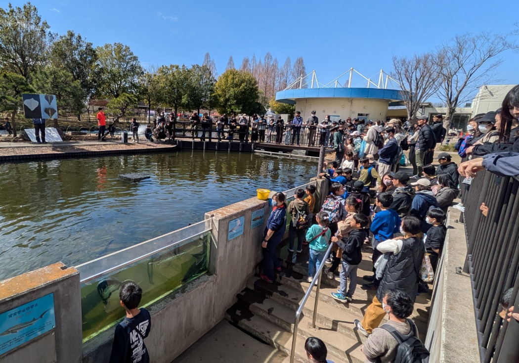 大きなチョウザメが勢いよくエサを食べる迫力シーンを間近で観察🐟 生態解説付きで学びもプラス、子どもも大人も目を奪われる水族館の人気イベント
