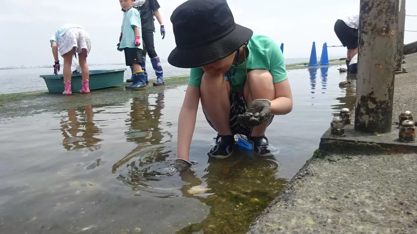 浦安の三番瀬海岸で行われる自然体験イベント🌊 潮の満ち引きでできた潮だまりに棲む生き物を観察しよう!自然解説員による丁寧な説明つき。長靴持参で海の不思議を親子で発見✨