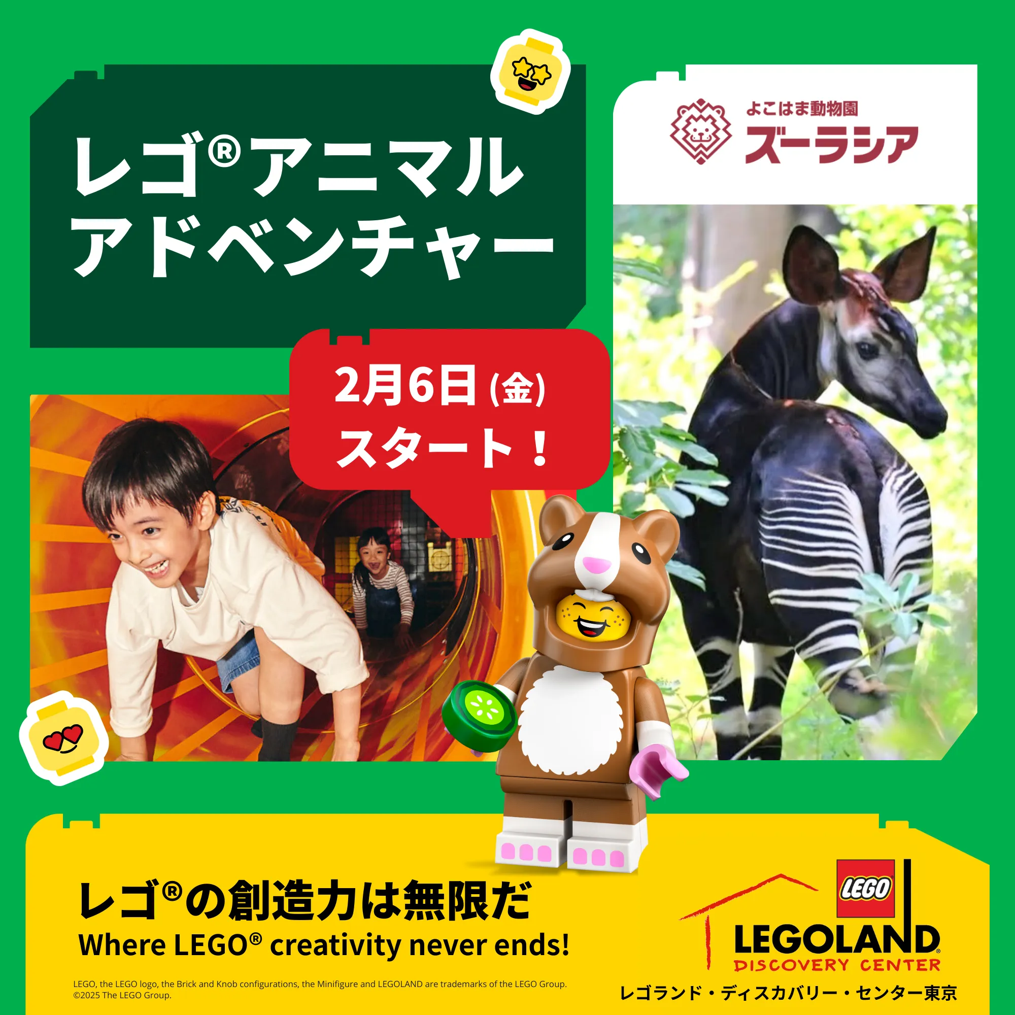 レゴランドと動物園がコラボ!🐘ブロックで作られたリアルな動物たちが登場。ワークショップで自分だけの動物を作って、レゴの世界で冒険しよう!🧱