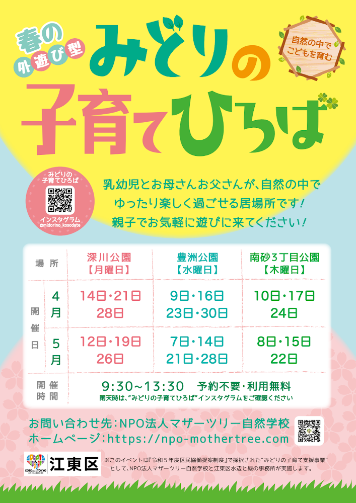 🌿 外遊び型みどりの子育てひろばが毎週開催!自然の中で親子で思いきり遊べる無料イベント。予約不要で気軽に参加できます 🌳✨