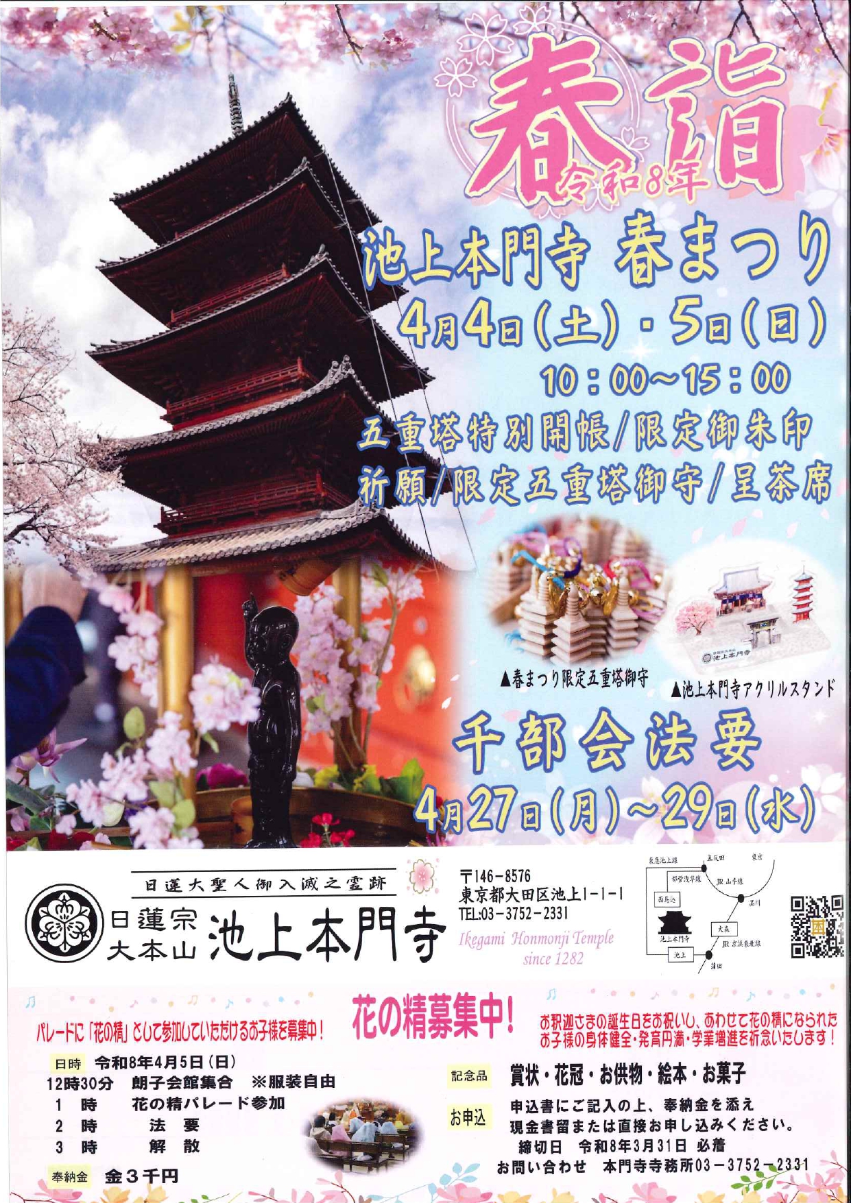 国指定の史跡・池上本門寺で春まつり開催!五重塔特別開帳や花まつりパレード、呈茶席など盛りだくさん🌸 4/5(日)には花まつりコンサートも✨ 春の歴史散歩に最適!