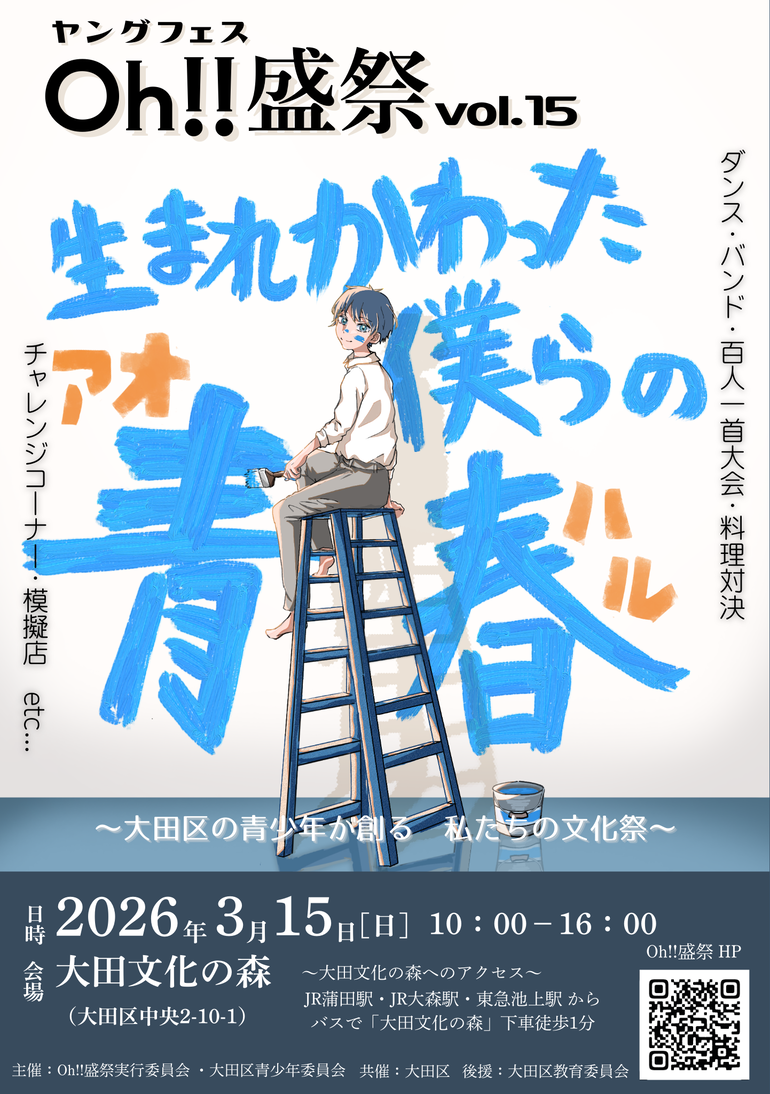 大田区の若者たちが企画・運営するパワフルなイベント!ダンスパフォーマンスやバンド演奏、模擬店などエネルギー満載。同世代の子どもたちには刺激的な一日に。家族で応援に行こう!