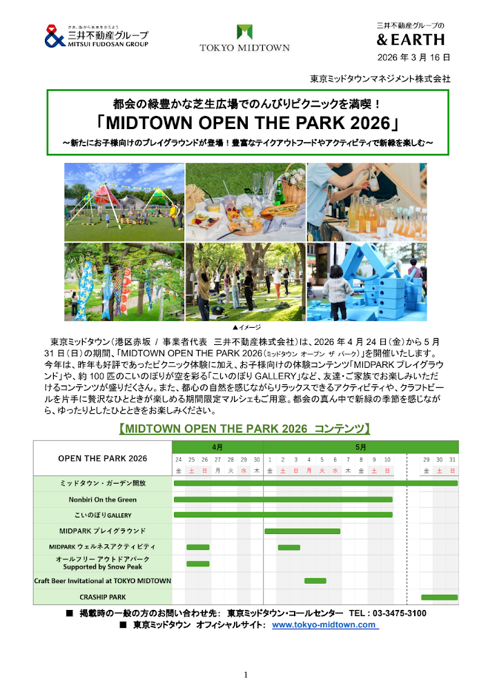 出典:MIDTOWN OPEN THE PARK 2026 公式サイト