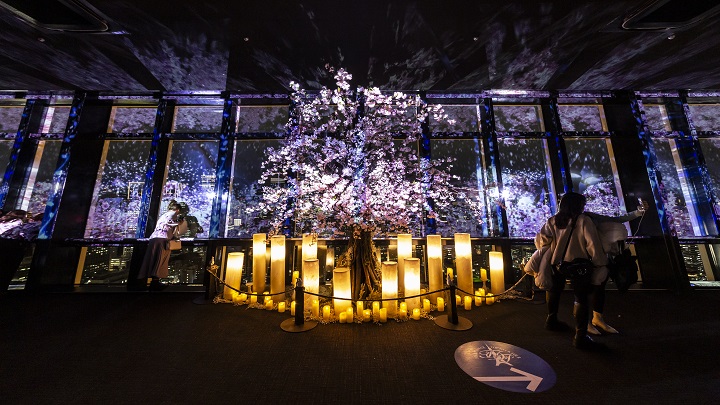 東京タワーの展望台で、夜景と満開の桜が楽しめるプロジェクションマッピングショー🗼🌸 東京の夜景×桜の幻想的な演出は圧巻✨ 春ならではの特別な体験を家族で楽しもう!