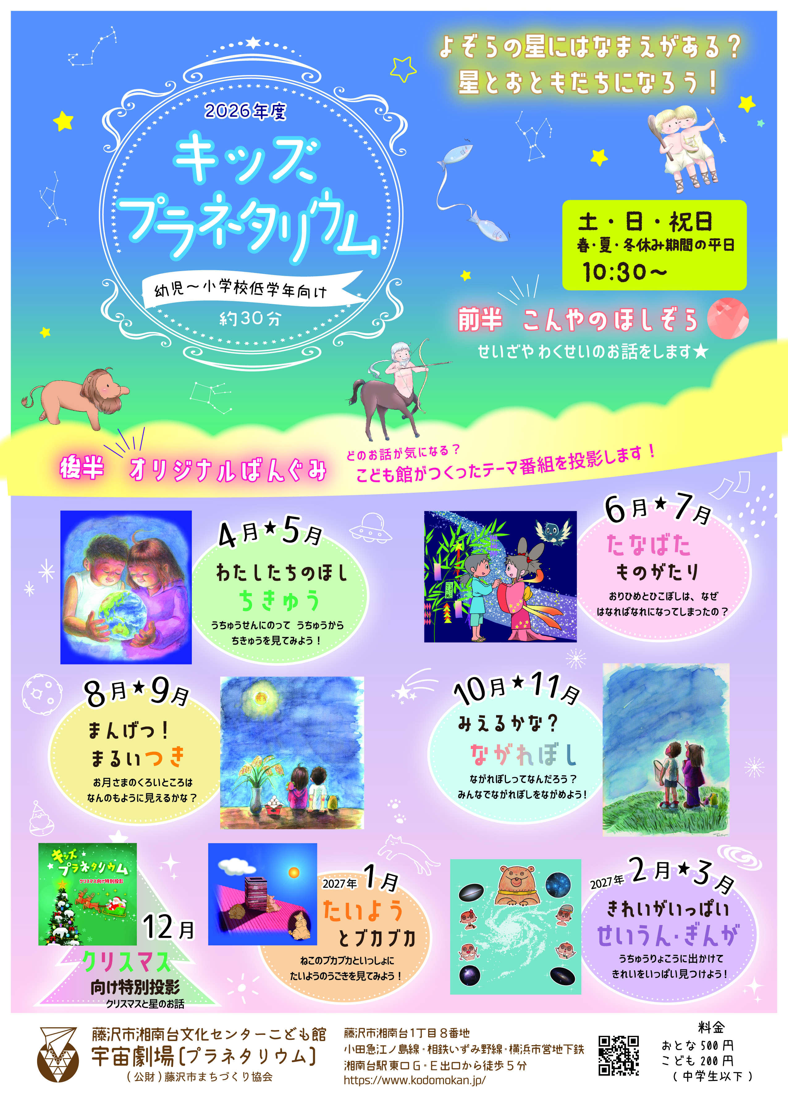 湘南台こども館の宇宙劇場で開催!🌍✨地球のことを学べる素敵なプラネタリウムだよ😄子どもの「なぜ?」がいっぱい出てくるような内容!土日祝のみだからお休みの日に親子で宇宙旅行しちゃおう🚀頭がスッキリしちゃう💫