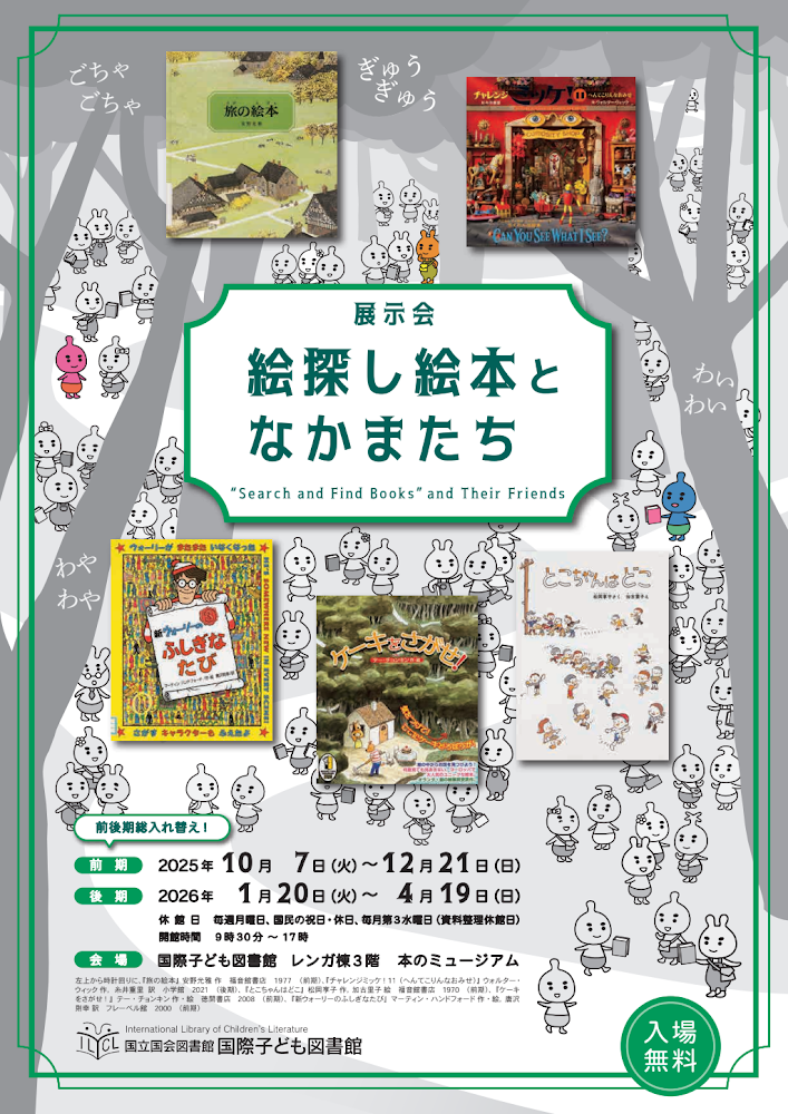 国際子ども図書館でみんな大好きな「絵探し絵本」を集めたワクワクする展示会が開催中だよ📚画面いっぱいに描かれた人や物の中から指定されたキャラクターを探し出すのは大人も子どもも夢中になっちゃうよね!世界中の色々な絵探し絵本に出会える大チャンスだよ👀