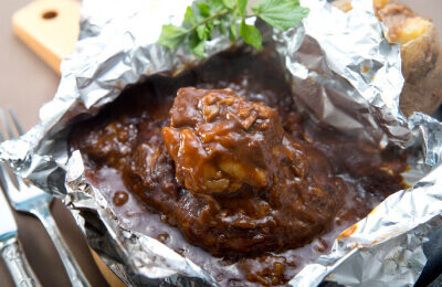 熱々のアルミホイルをナイフで開けると、特製ビーフシチューがたっぷりかかった絶品ハンバーグが登場🥩✨美味しいお肉料理に、家族みんなのテンションも上がりそう!横浜駅直結のルミネ内にあるのでベビーカーで入店でき、子ども用食器や駐車場、おむつ替えスペースも利用できて快適です😊